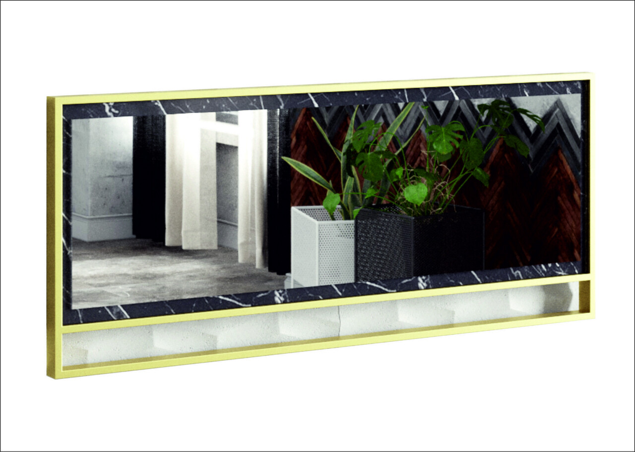 <p>Cadru: Metal<br/><br/>Grosime: 18 mm<br/><br/>Dimensiunea oglinzii: Latime: 90 cm <br/> Inaltime: 37,8 cm <br/> Adancime: 3 cm<br/><br/>Poate fi fixat pe perete<br/><br/>Oglinda inclusa<br/></p>