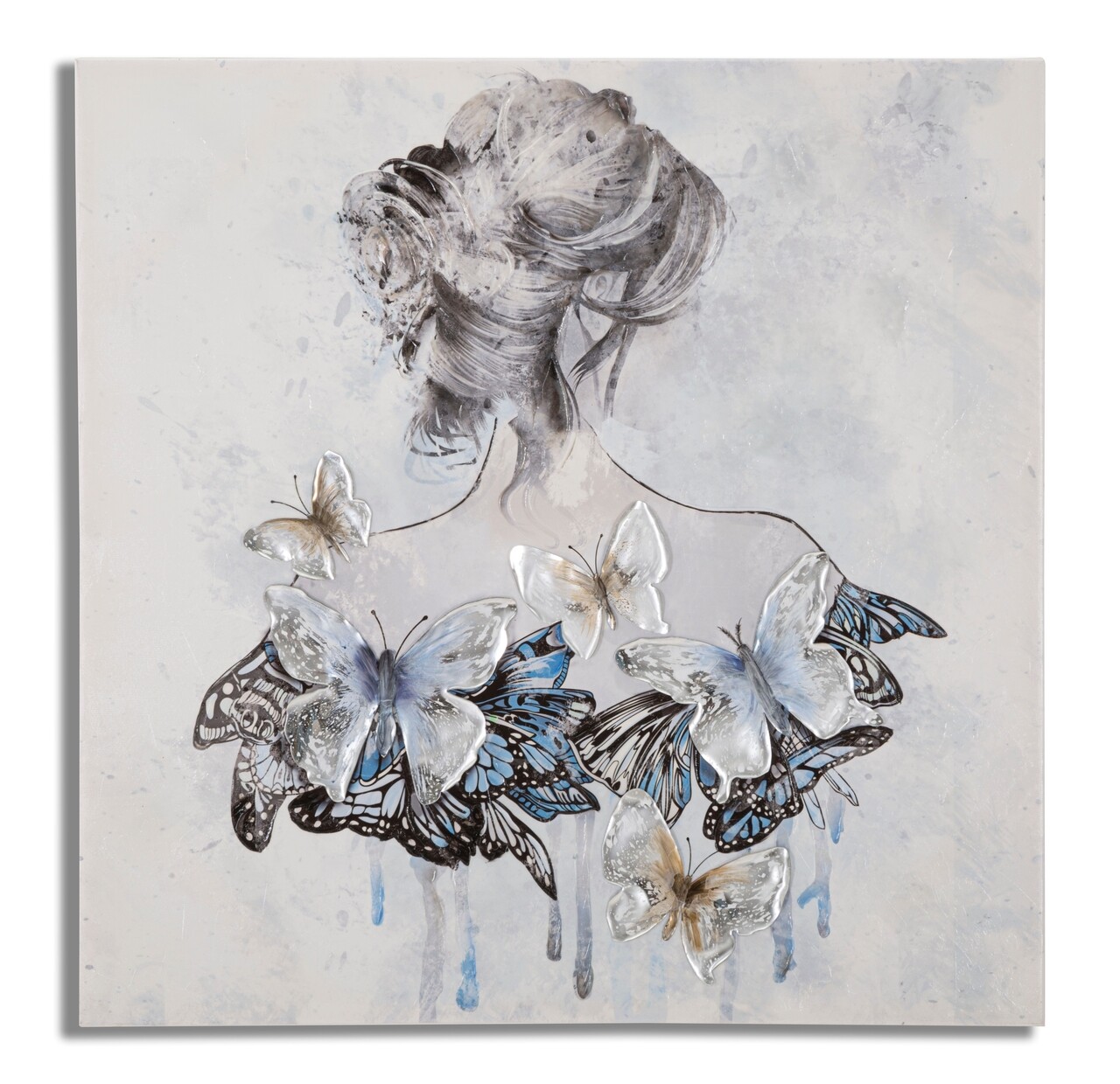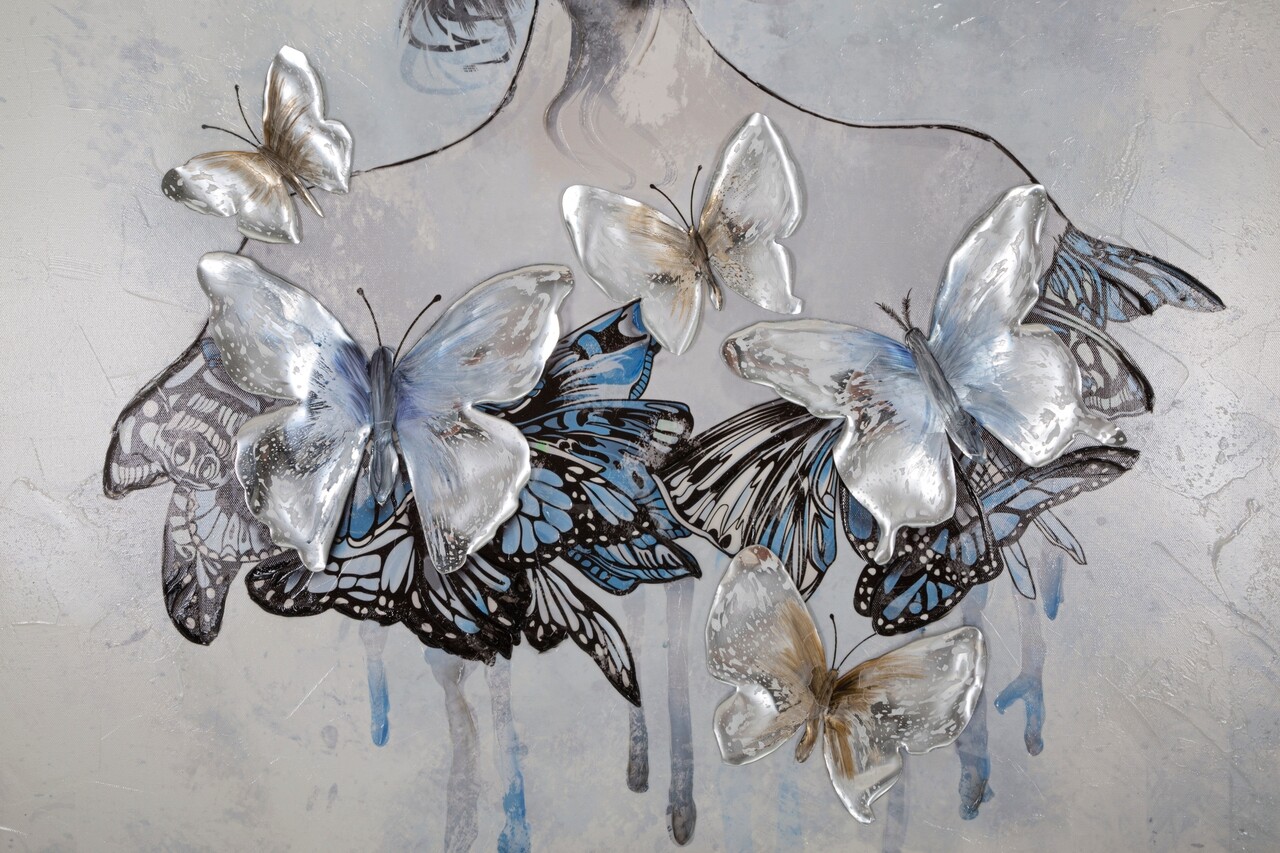 <p>Compozitie material: lemn de pin si panza.<br />Pictura pe panza cu rama de lemn ce infatiseaza o femeie din spate cu o rochie formata din fluturi in relief.</p>