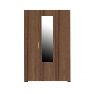 Dulap CORINNE 3 usi, 4 rafturi, bara de haine, oglinda, nuc, cant vanilie, 120x50x188 cm