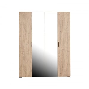 Dulap ECONO, oglinzi, 4 usi, 4 rafturi, bara de haine, sherwood, 160x50x206 cm