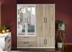 Dulap haine PRIMAVERA 90, H200, 2U2S, bara umerase, Oak, Alb Gloss