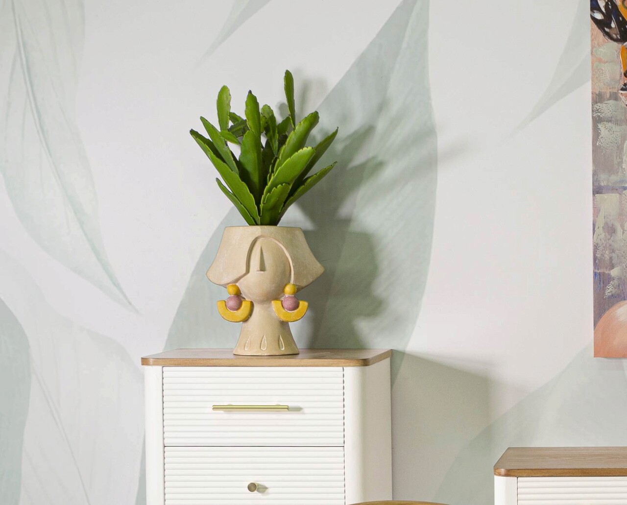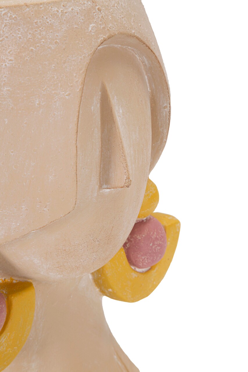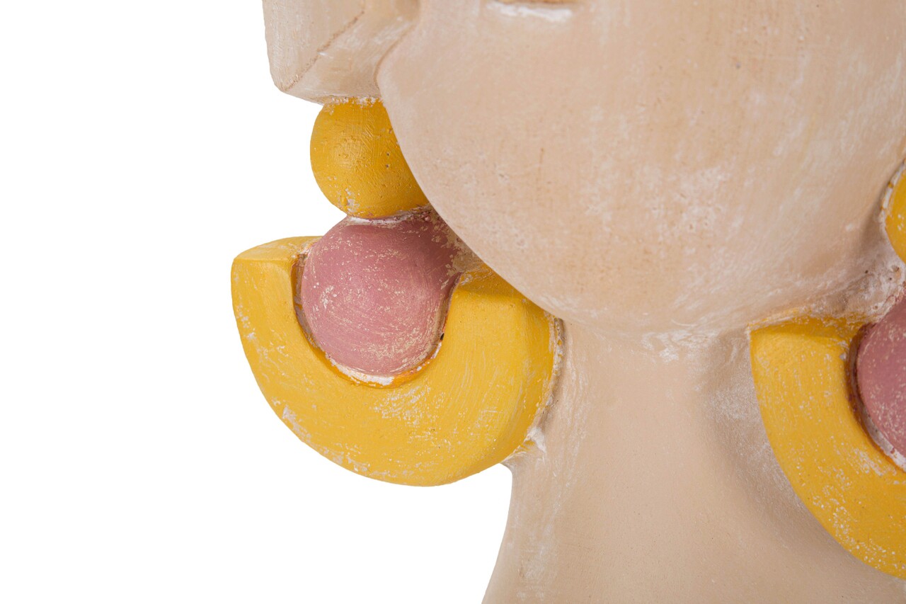 <p>Vaza care infatiseaza chipul unei femei cu un design care aminteste de cubism, cu cercei eleganti si colorati.</p>