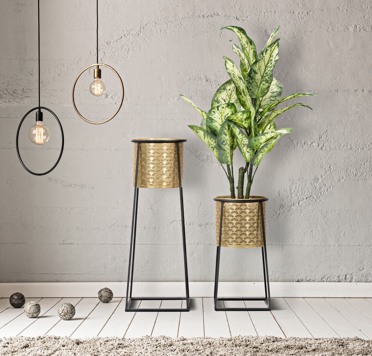Set 2 suporturi pentru ghivece, Couple Cup, Mauro Ferretti, fier, negru/auriu