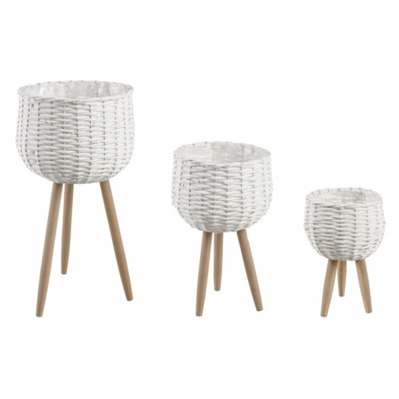 Set 3 ghivece, Tripod White, Bizzotto, Ø30×24-58 cm, lemn de salcie/lemn de fag