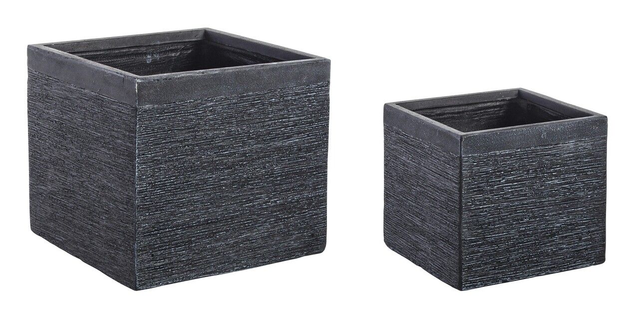 Set ghivece pentru exterior 2 piese Graffiti, Bizzotto, 40 x 40 x 37.5 cm, fibra de sticla si argila, negru