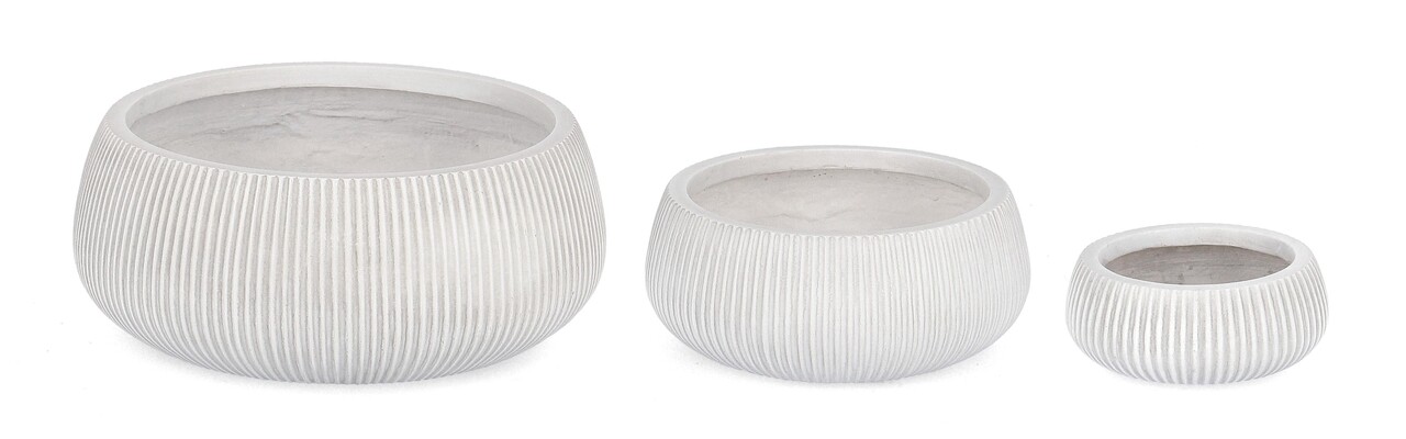 Set ghivece pentru exterior 3 piese Ribbed, Bizzotto, Ø43 x 18 cm, fibra de sticla si argila, alb