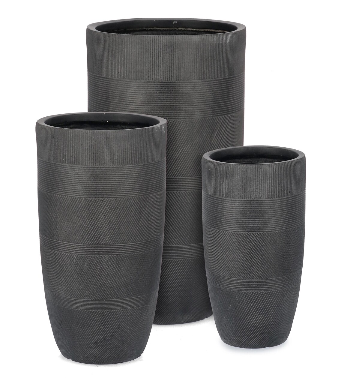 Set ghivece pentru exterior 3 piese Rigo, Bizzotto, Ø37 x 70 cm, fibre de lut, antracit