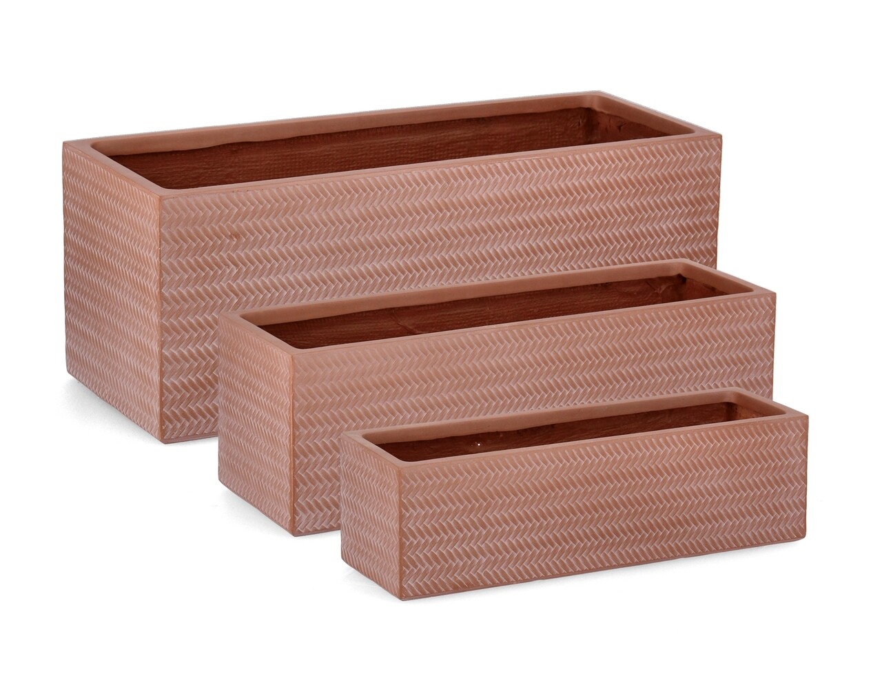 Set jardiniere pentru exterior 3 piese Tressage, Bizzotto, 80 x 30 x 30 cm, fibra de sticla si argila, teracota