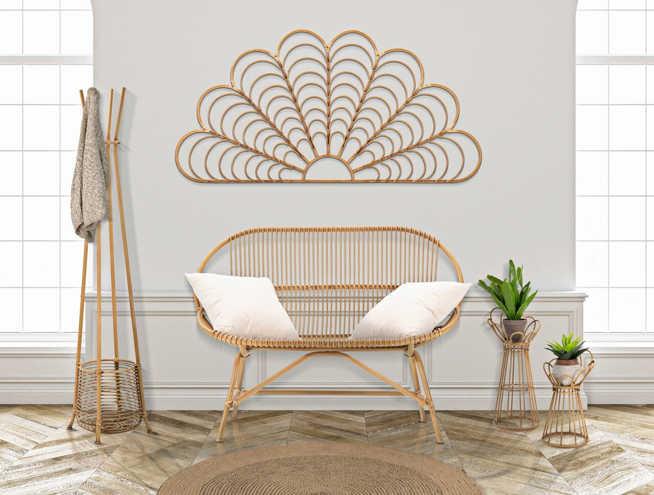 <p>Suport de ghiveci rotund si elegant din metal cu finisaj din ratan, cu un design care seamana cu o floare.<br />Compozitie material: fier, plastic.</p>