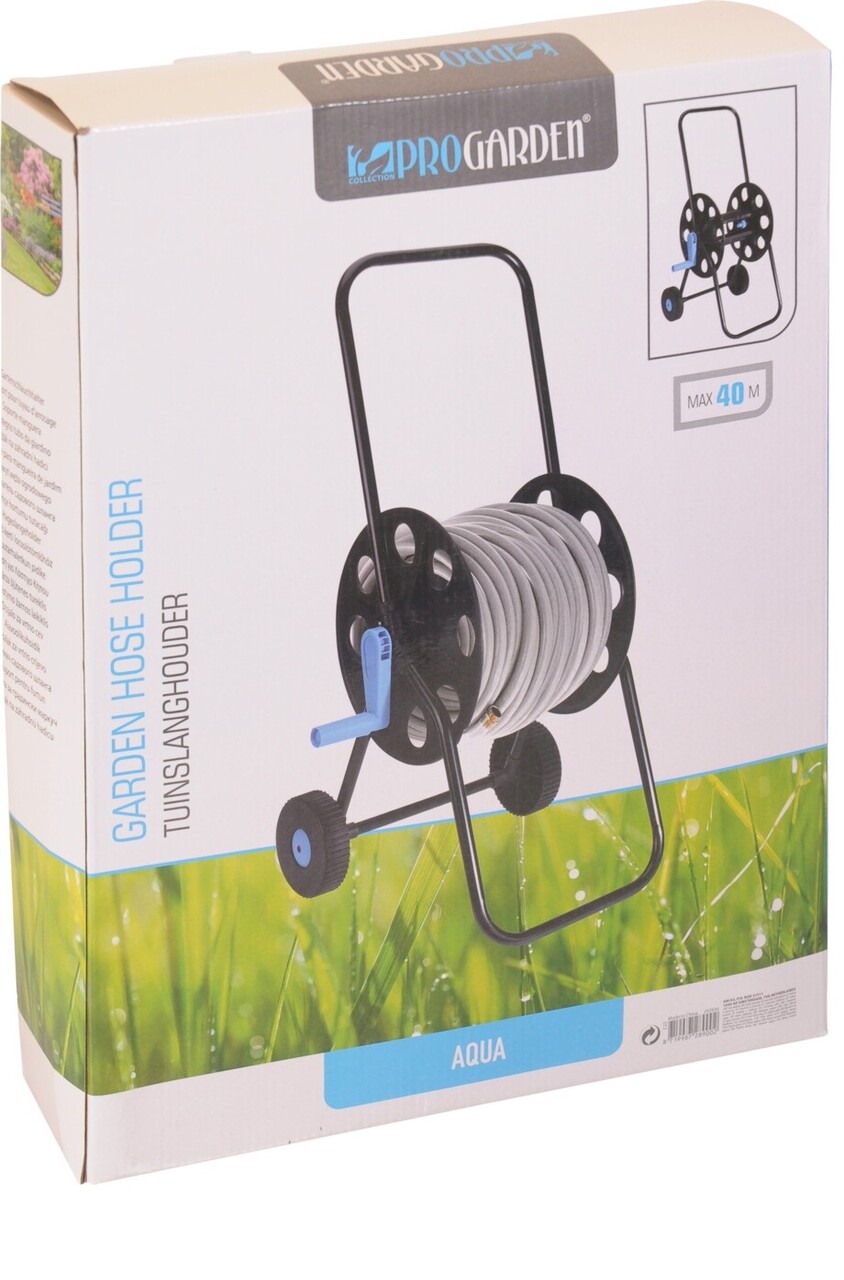 Suport pentru furtun de gradina, 40 m, metal, negru/albastru
