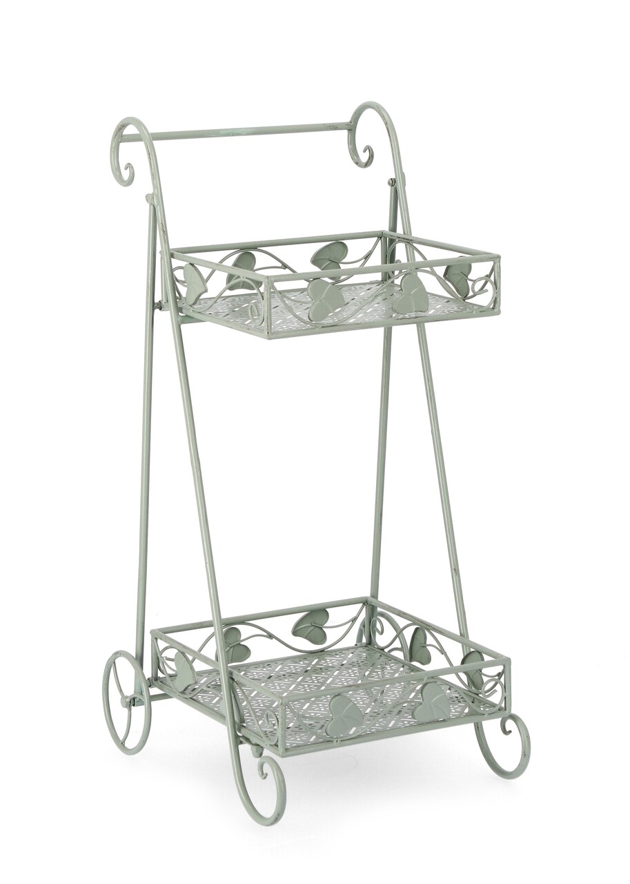 Suport pentru ghivece Harriet Rectangle, Bizzotto, 41 x 34 x 78 cm, otel, verde sage