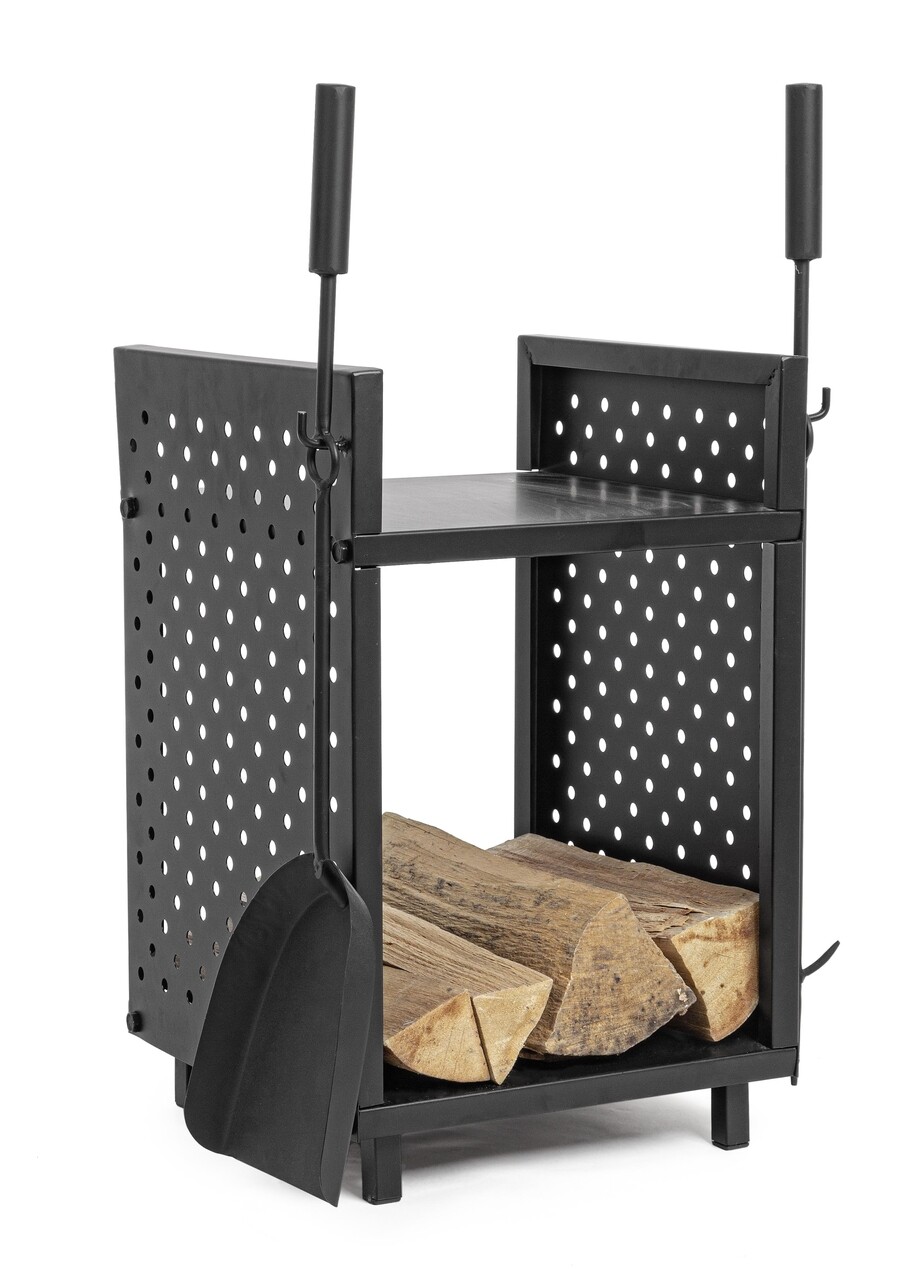 Suport pentru lemne semineu Efesto, Bizzotto, 43 x 35 x 55 cm, otel, negru