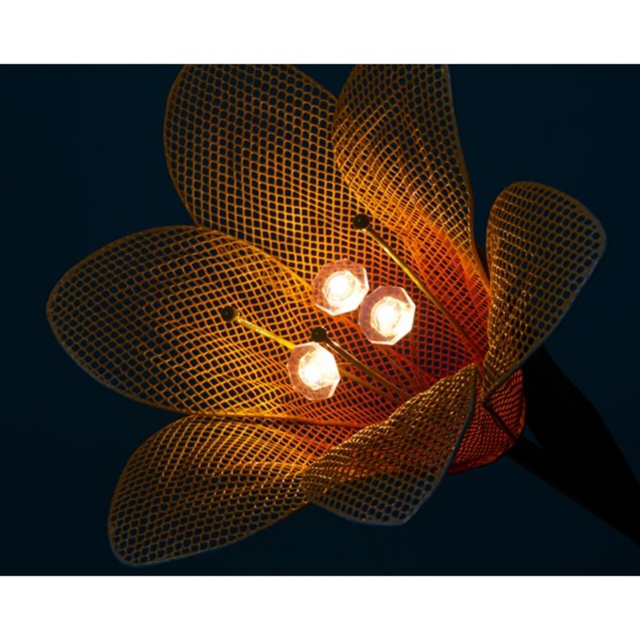 <p>Funcționează cu<br />1 baterie de tip Ni-Mh AA si un panou solar de 30 miliamperi<br /><br />Dimensiune varf: 9.4 cm<br /><br />Mențiuni<br />Becurile nu se pot inlocui.</p>