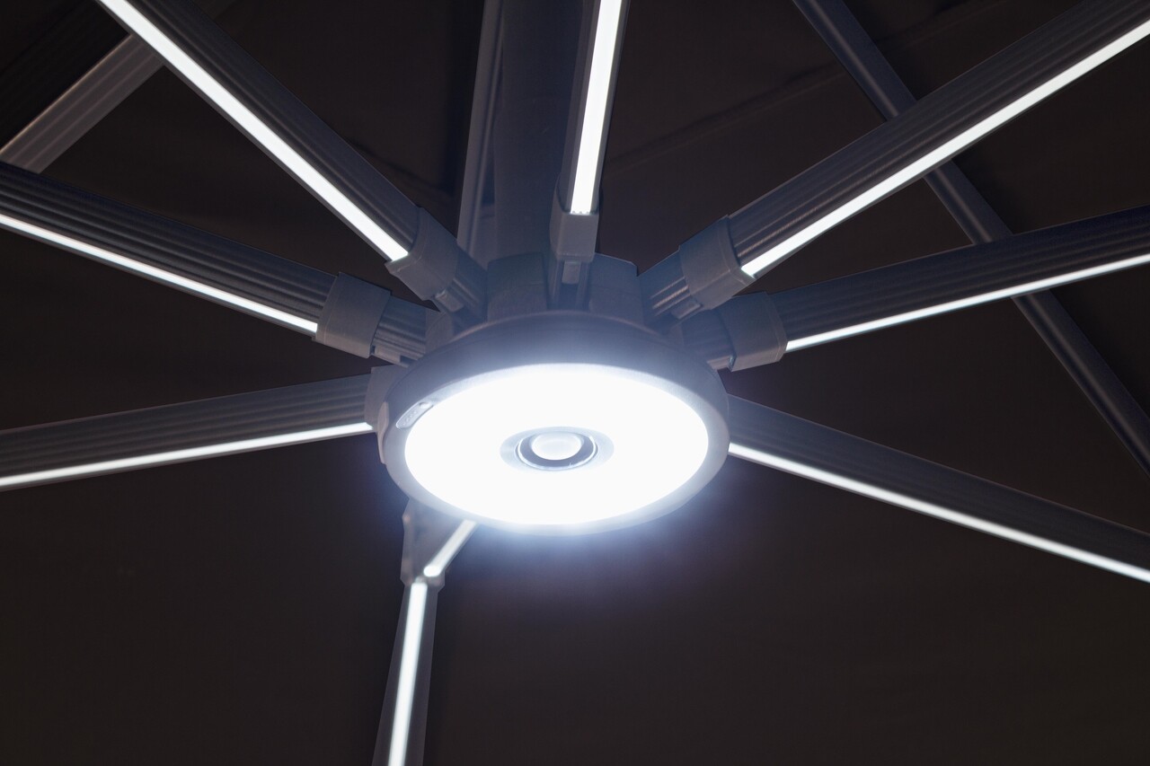 Lampa LED pentru umbrela de gradina/terasa, Bizzotto, reincarcabila, reglabila, USB, Ø15×4.5 cm