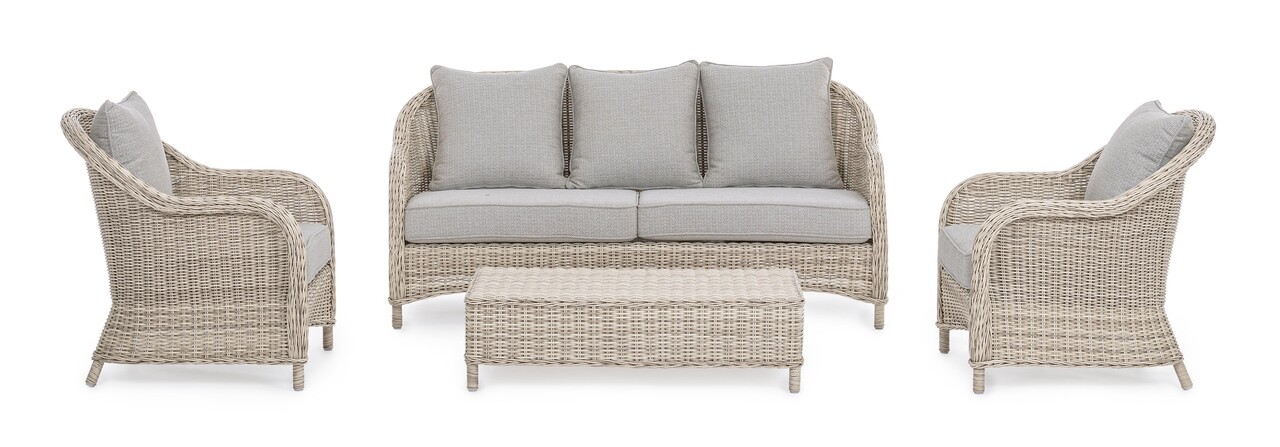 Canapea cu 3 locuri pentru gradina Aditya, Bizzotto, 175 x 82 x 83 cm, aluminiu/fibre sintetice/ofelina, natural