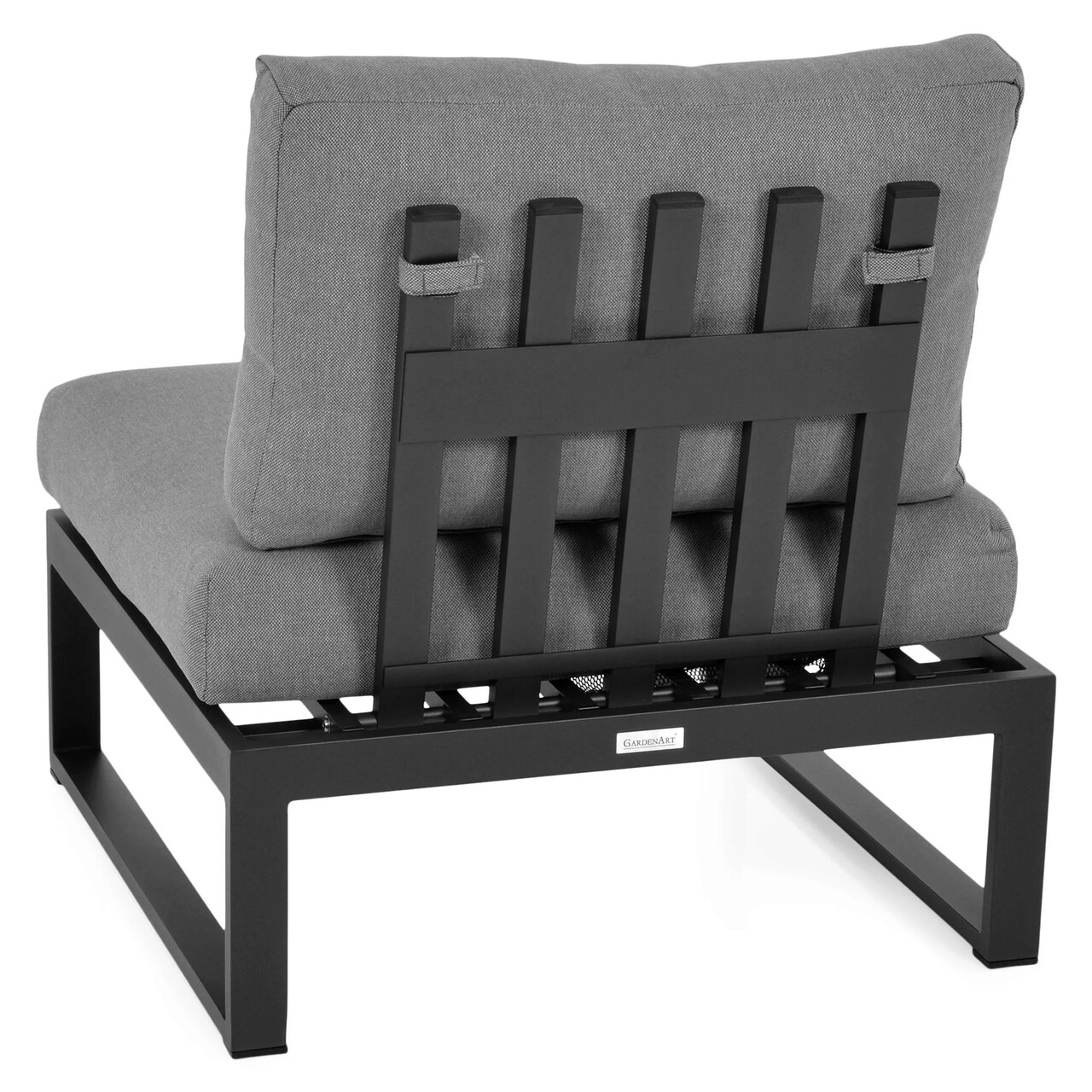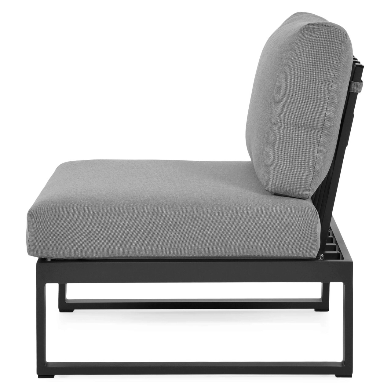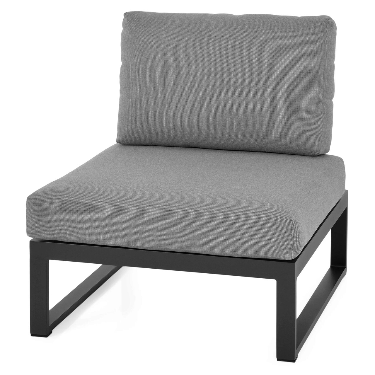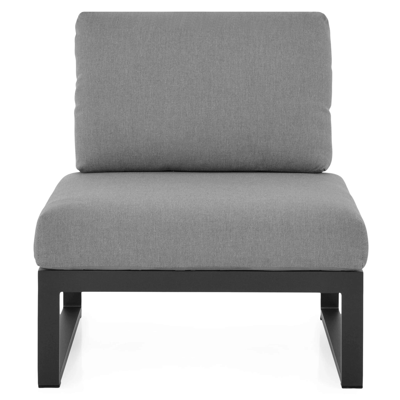 <p>Modul canapea exterior 1 loc. Structura este realizata din aluminiu vopsit in camp electrostatic. Pernele sunt realizate din poliuretan imbracat in tesatura Olefin cu protectie impotriva razelor UV si a umezelii. Husele pernelor sunt prevazute cu fermoar pentru a fi mai usor de indepartat si curatat.</p>