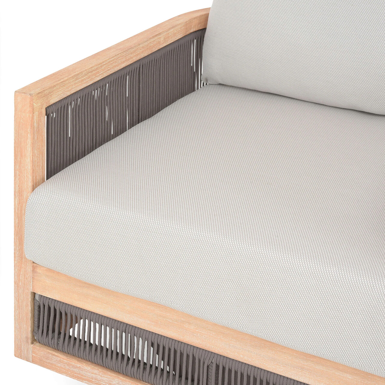 <p>Realizat din lemn de teak certificat. Include fibre din poliester tip funie cu protectie UV. Include perne din tesatura Olefin 20 cm grosime cu protectie impotriva umezelii.</p>