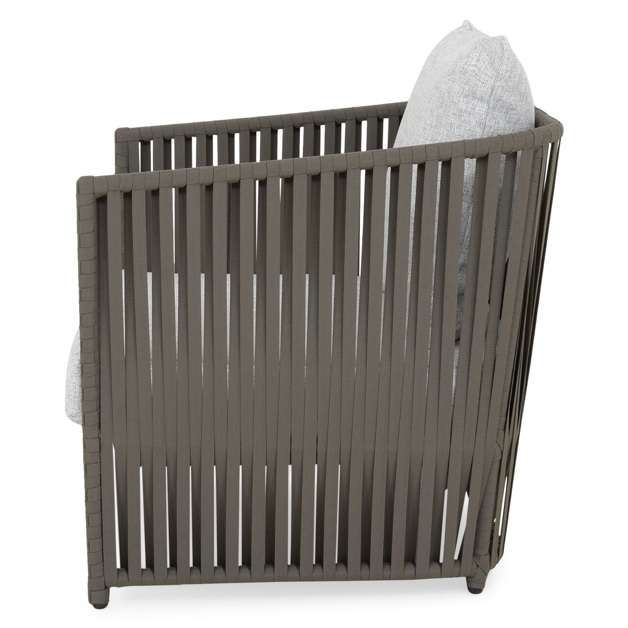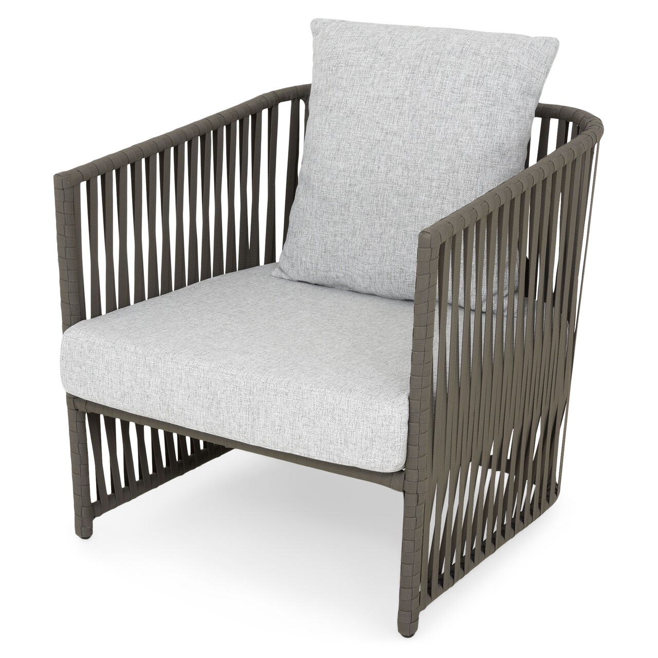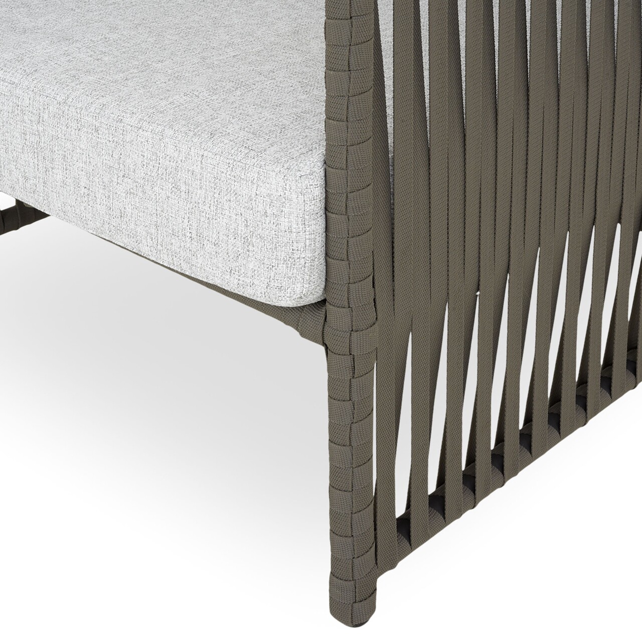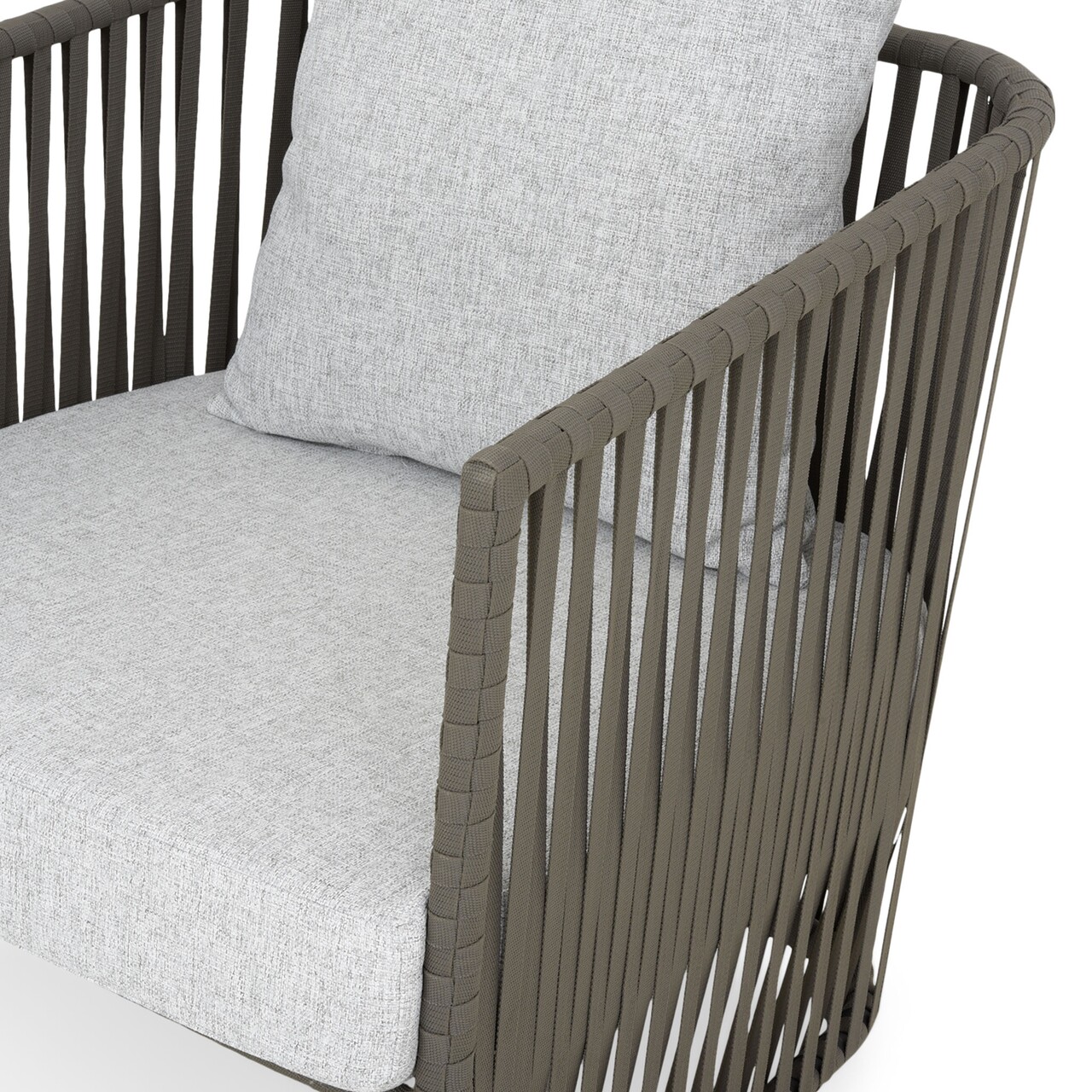 <p>Realizat din structura de aluminiu vopsita in camp electrostatic si impletita cu chinga Vyro din poliester tratat UV. Include perne din tesatura Olefin cu protectie impotriva umezelii si a decolorarii. Husele pernelor sunt prevazute cu fermoar pentru a fi mai usor de indepartat si curatat.</p>