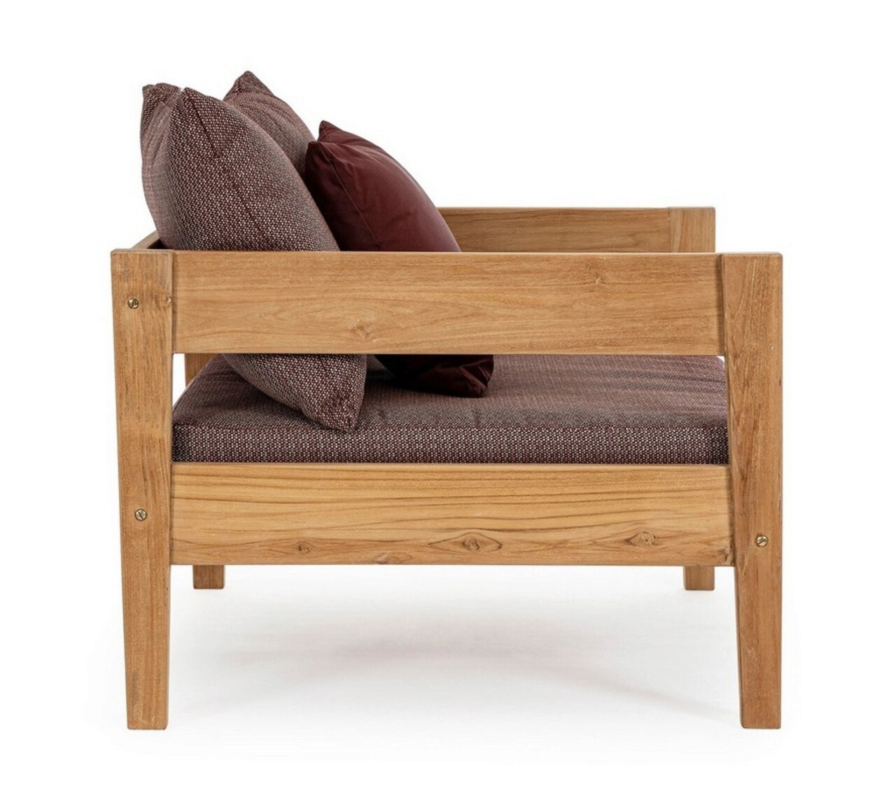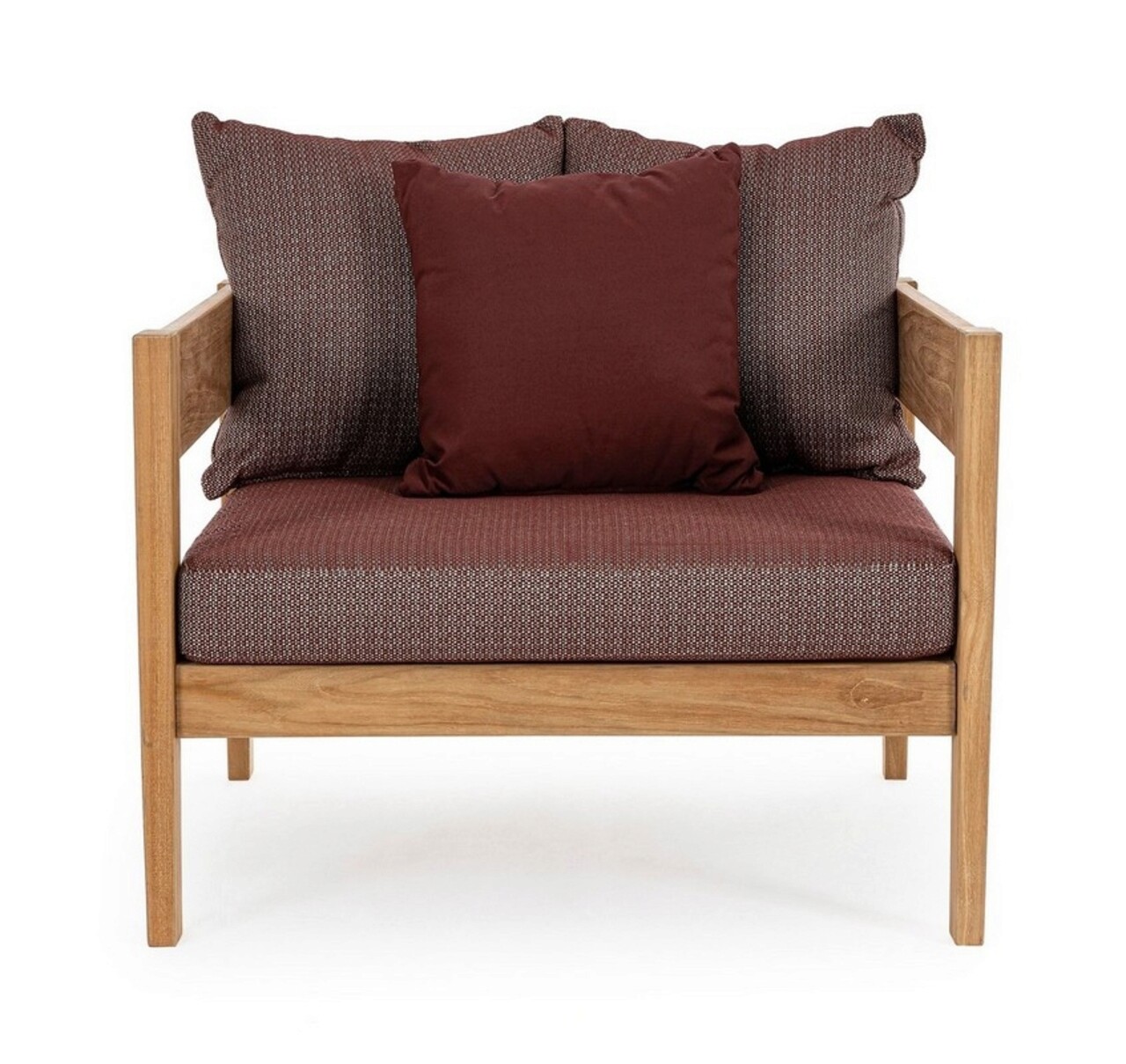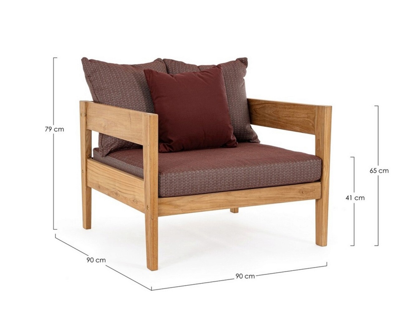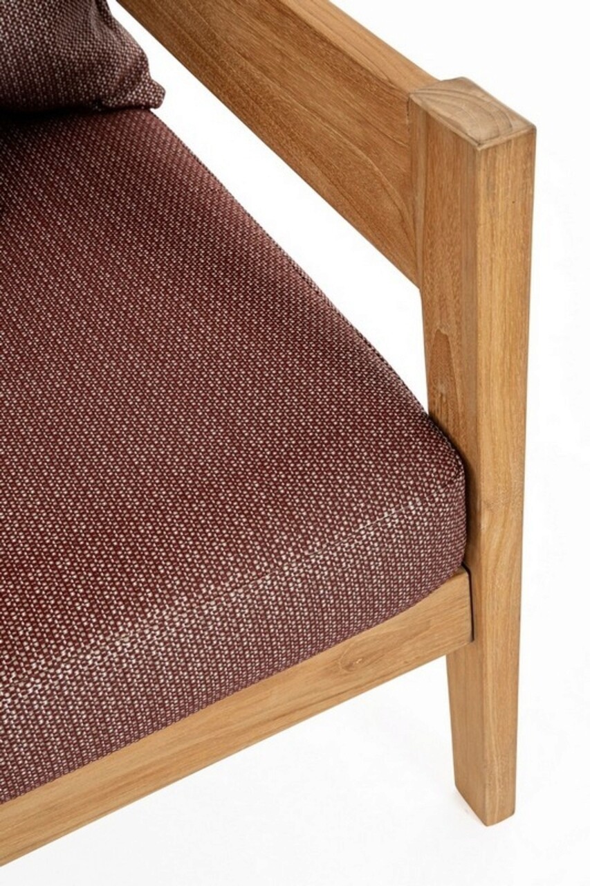 Fotoliu pentru gradina/terasa Kobo, Bizzotto, 90 x 90 x 79 cm, lemn de tec certificat Fsc/tesatura olefin, rosu wine