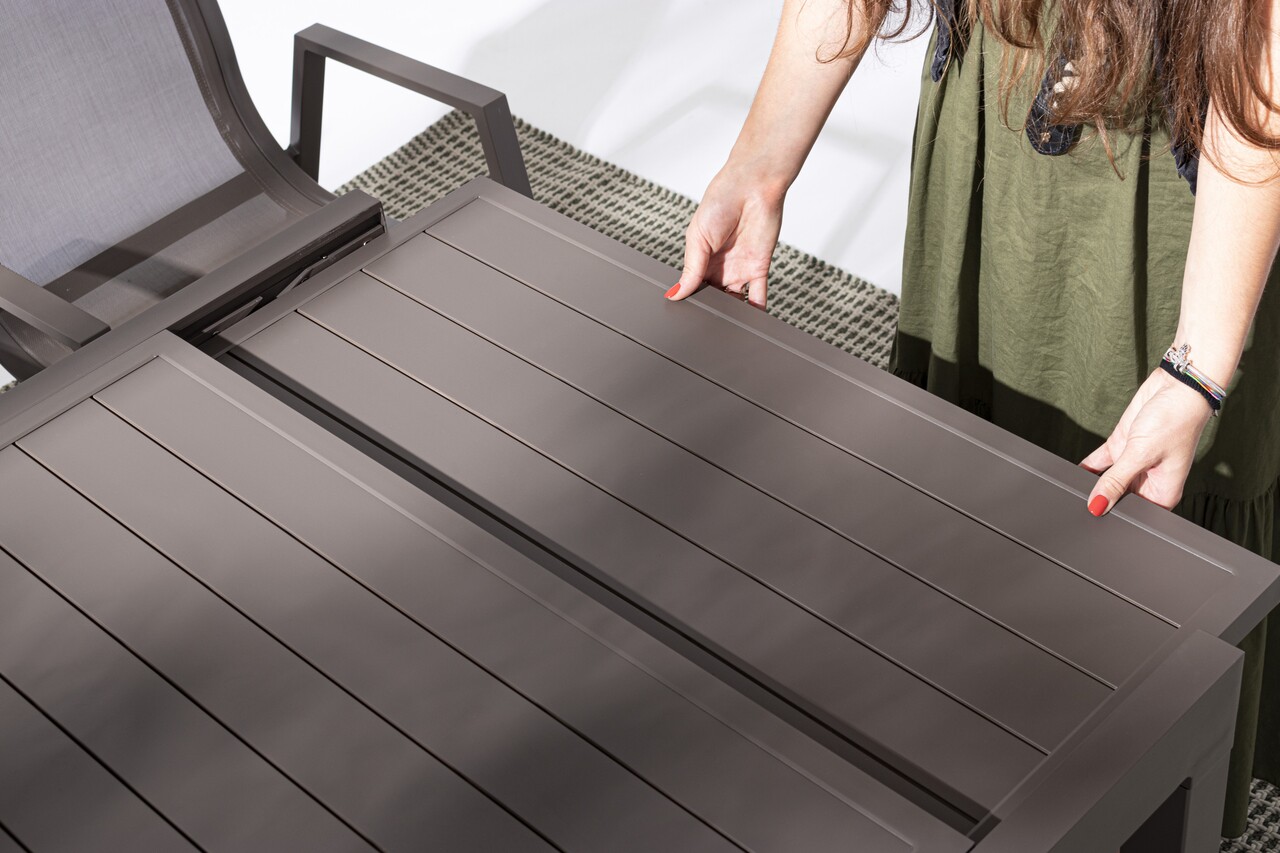 Masa extensibila pentru gradina Pelagius, Bizzotto, 135-270 x 90 x 75 cm, aluminiu, cafeniu