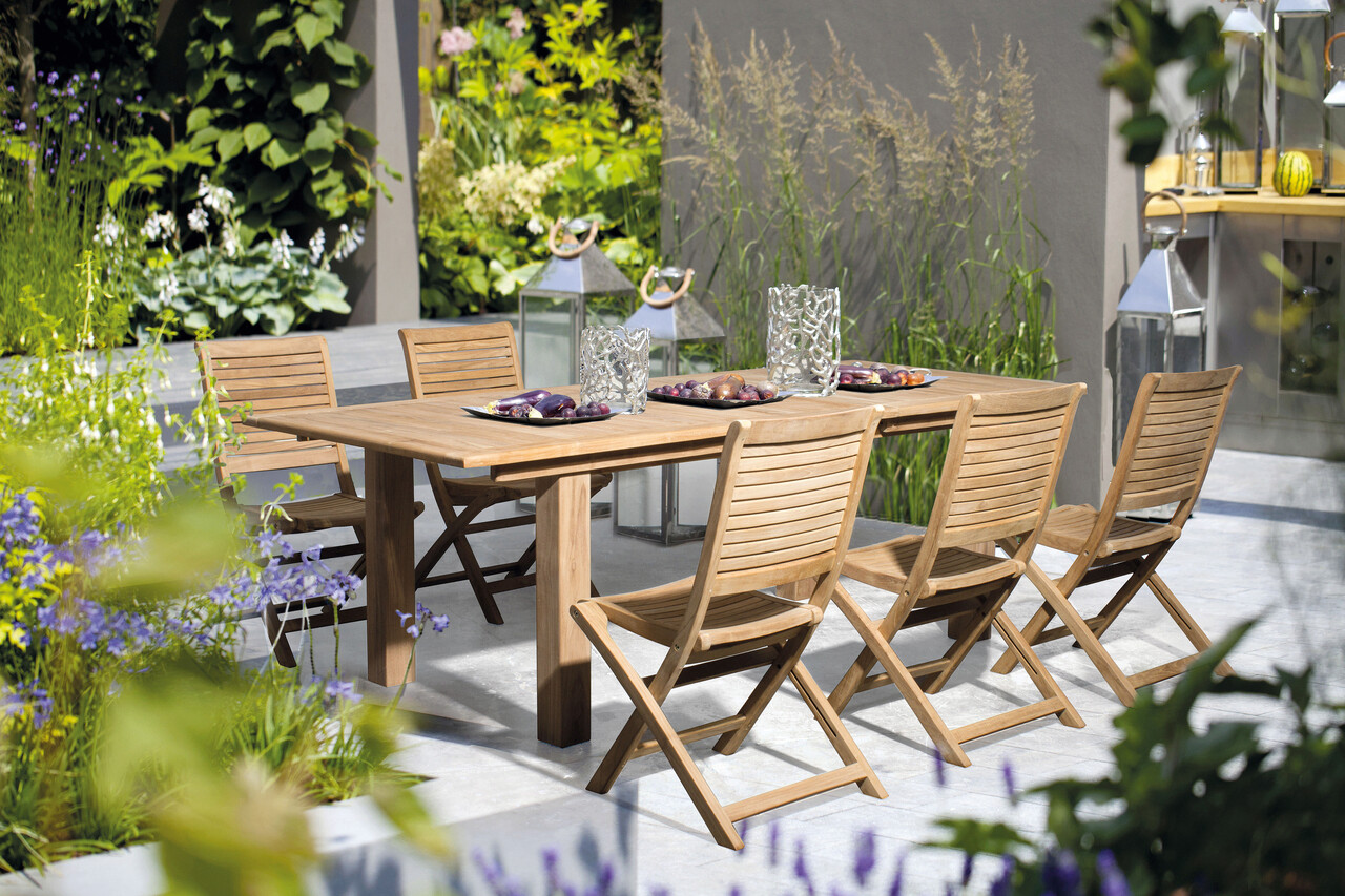 Masa extensibila pentru gradina/terasa Maryland, Bizzotto, 180/240 x 100 x 77.5 cm, lemn de tec/otel