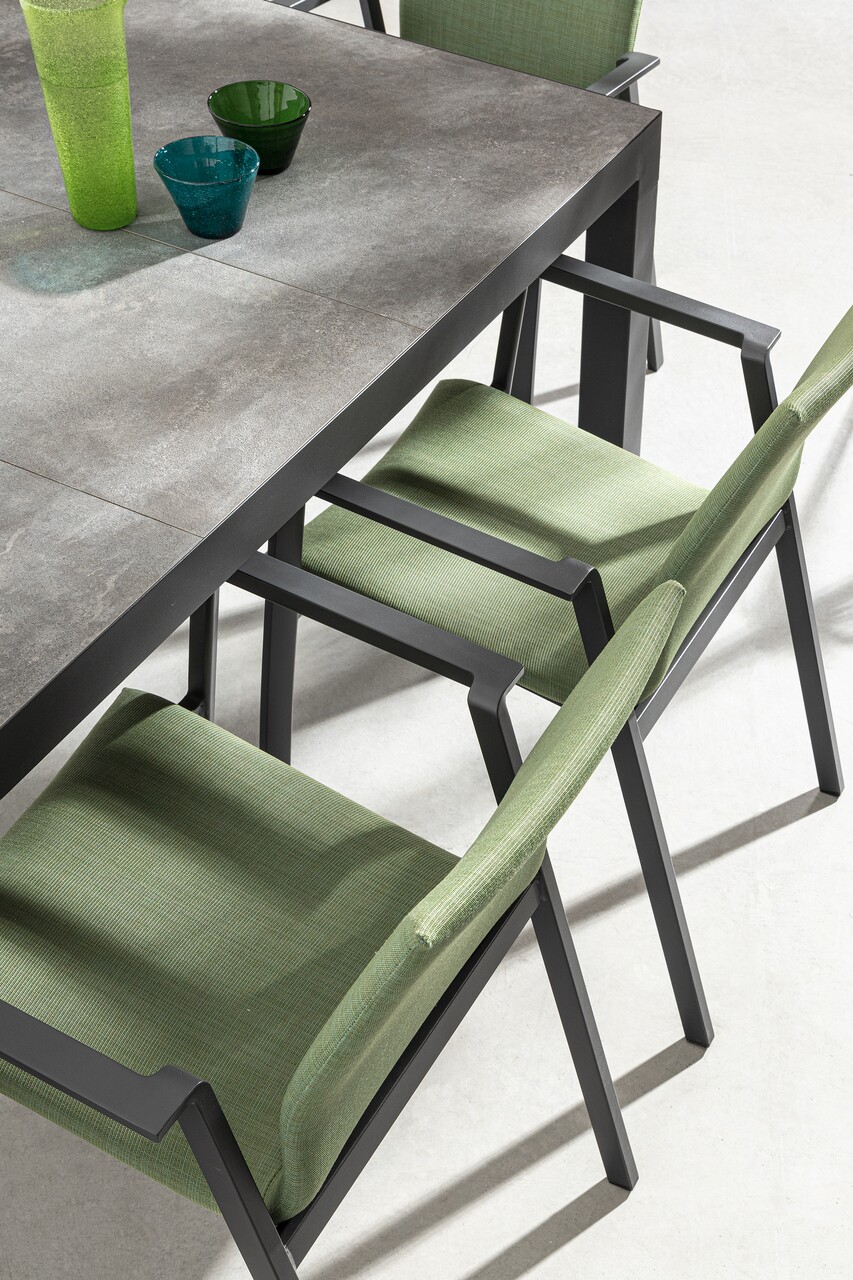 Masa pentru gradina Mason, Bizzotto, 160 x 90 x 74 cm, aluminiu/ceramica, gri carbune