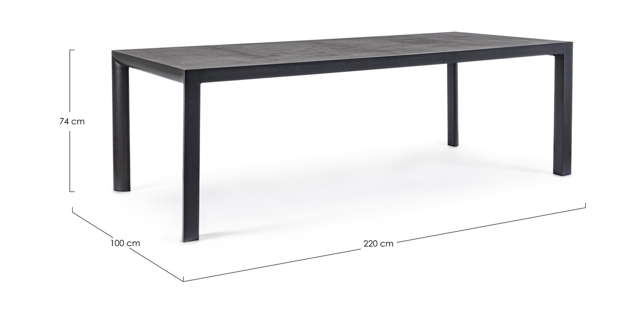 Masa pentru gradina Mason, Bizzotto, 220 x 100 x 74 cm, aluminiu/ceramica, gri carbune