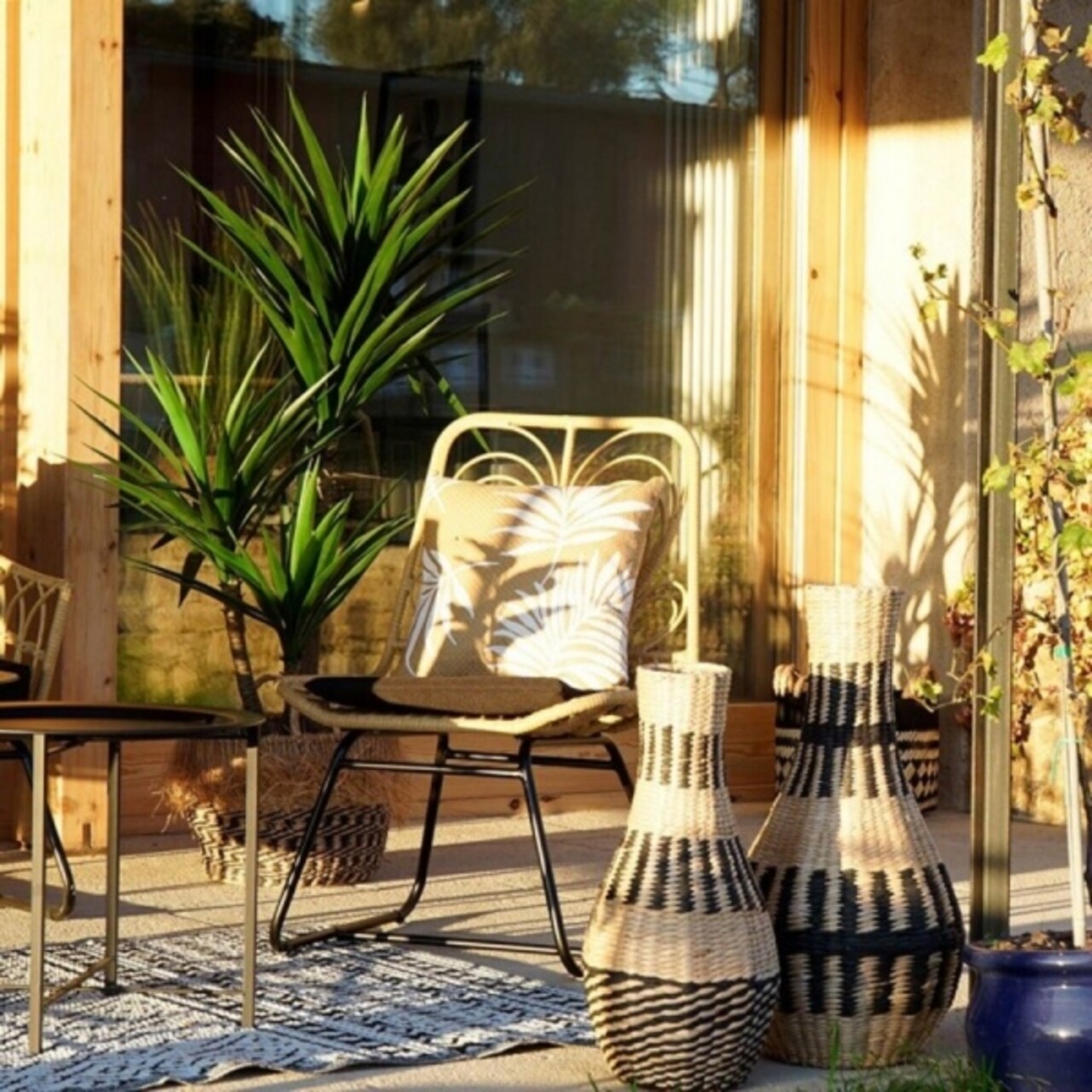 Scaun pentru gradina/terasa, DKD Home Decor, 58 x 65 x 89 cm, metal/ratan, negru/bej