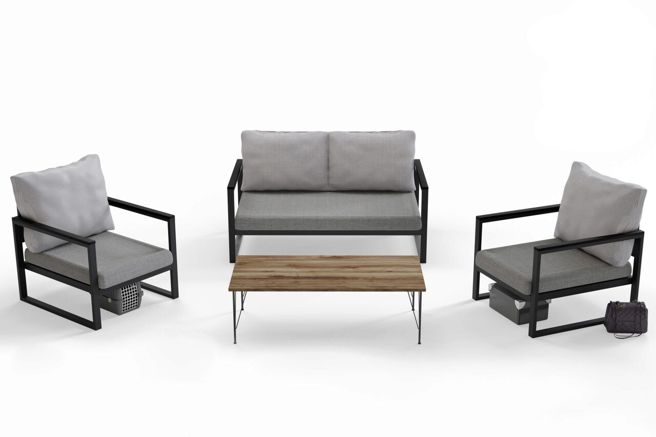 <p>Cadru: Metal (Profil 20 x 40 / 1,5 mm grosime)<br/><br/>Tesatura: Acril / POLURETAN<br/><br/>Canapea 2 locuri: 128 cm <br/> Inaltime: 71 cm <br/> Adancime: 65 cm<br/><br/>Fotoliu: <br/>Latime: 74 cm <br/>Inaltime: 71 cm <br/>Adancime: 65 cm (2 piese)<br/><br/>Inaltime sezut: 42 cm<br/><br/>Inaltimea spatarului: 71 cm<br/><br/>(1 piesa)<br/></p>