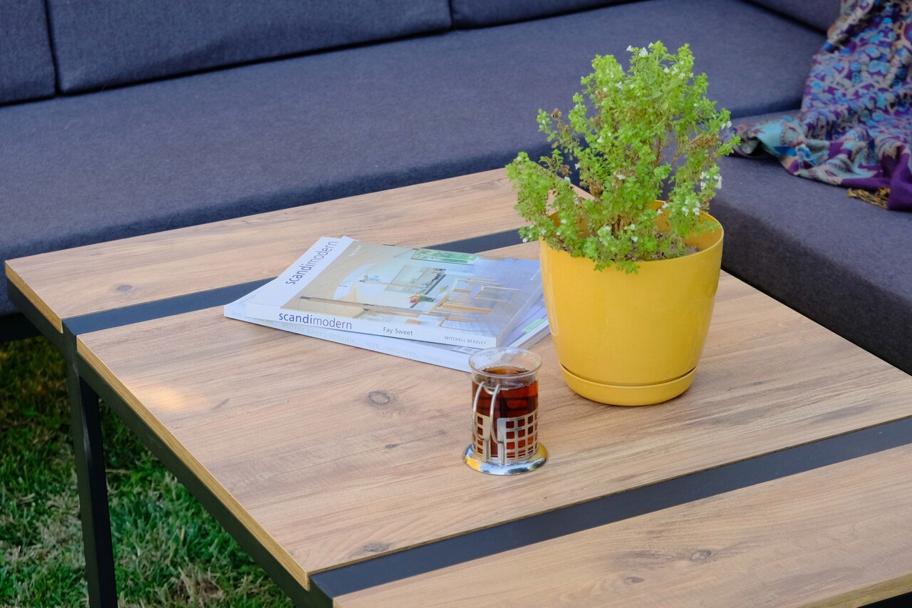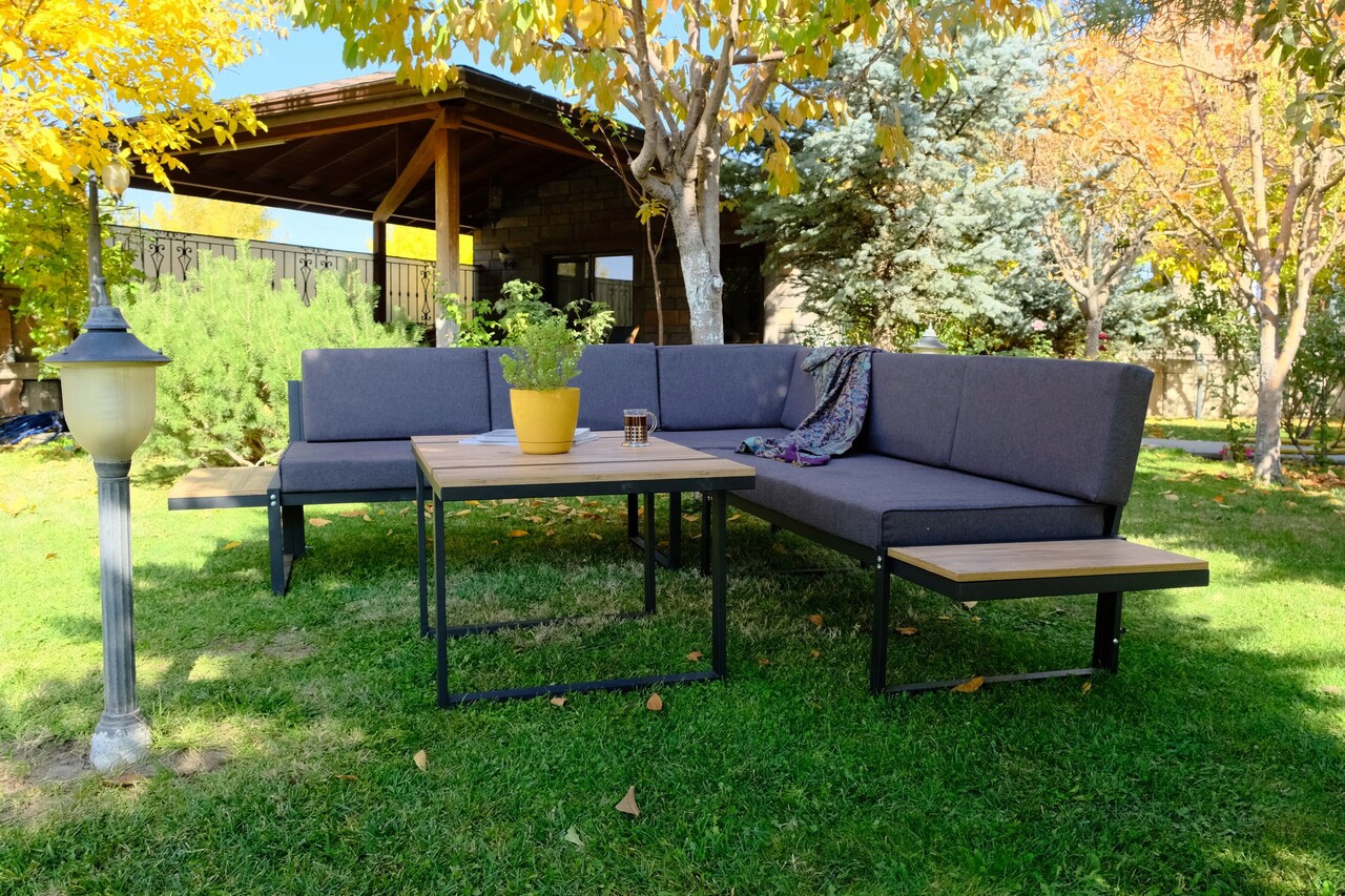 Set mobilier de gradina, Valovi, Mers Corner, Metal, Negru / Lemn / Gri