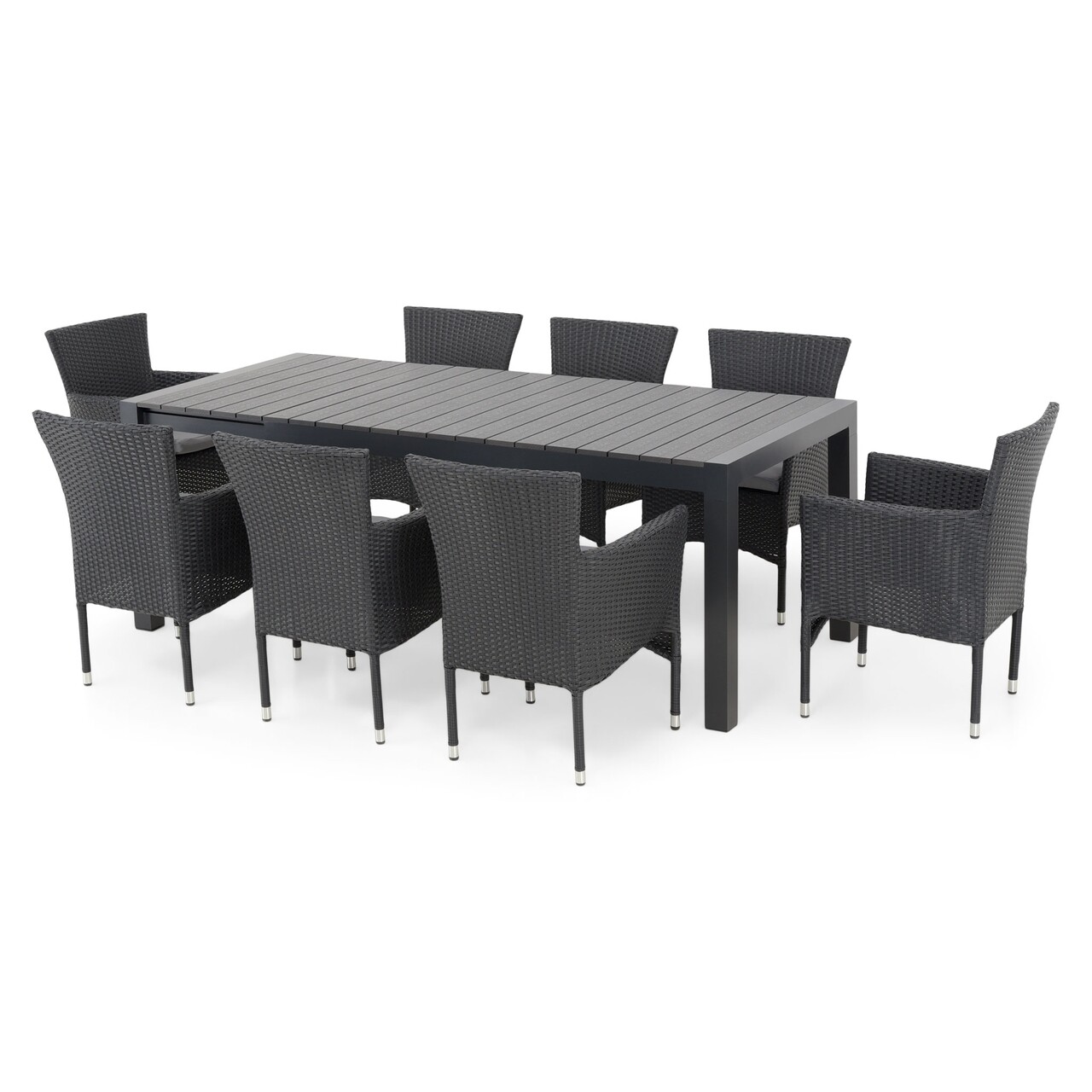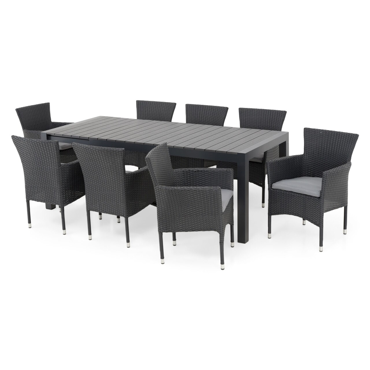 Set mobilier gradina/terasa, 8 scaune + masa extensibila Encore, aluminiu, gri/negru