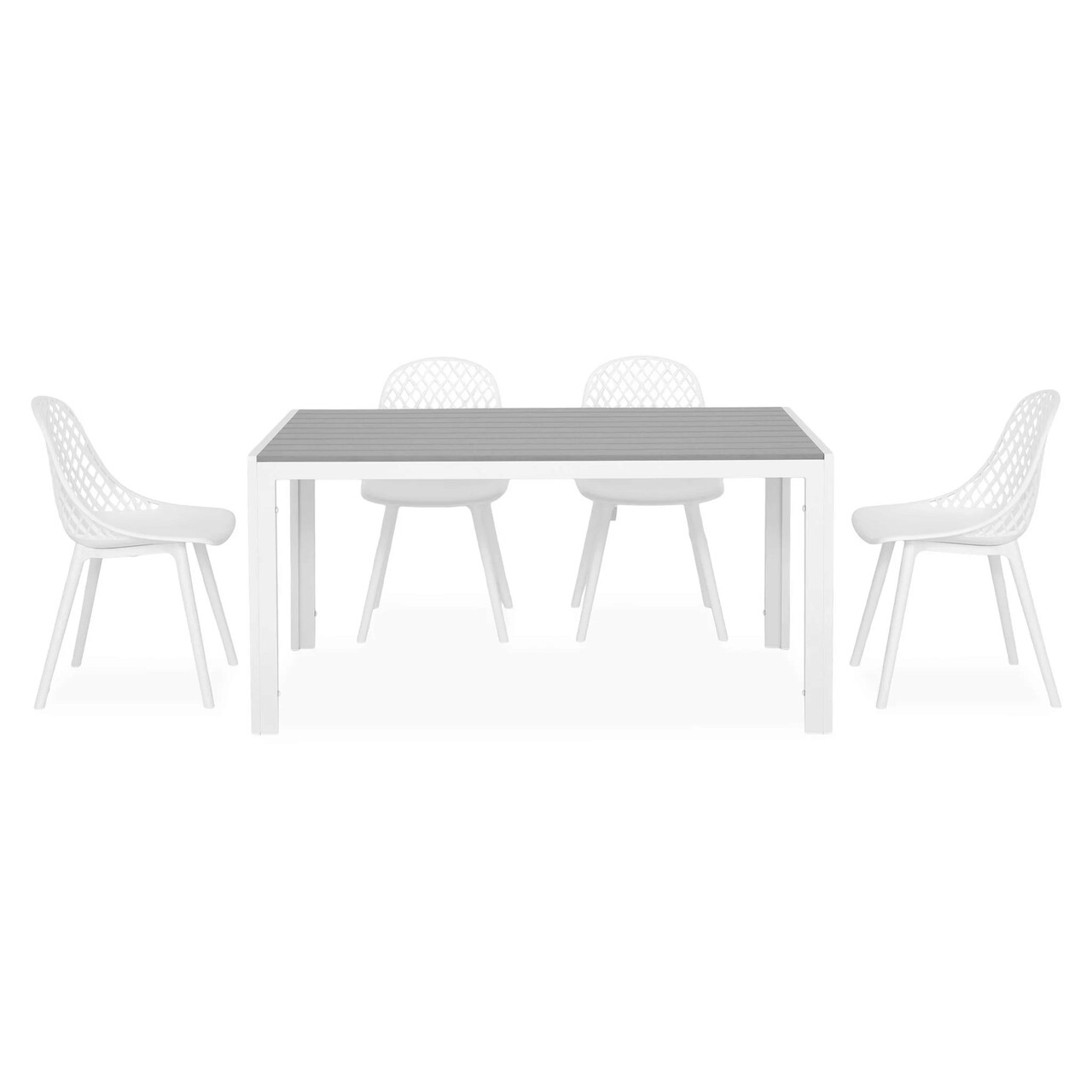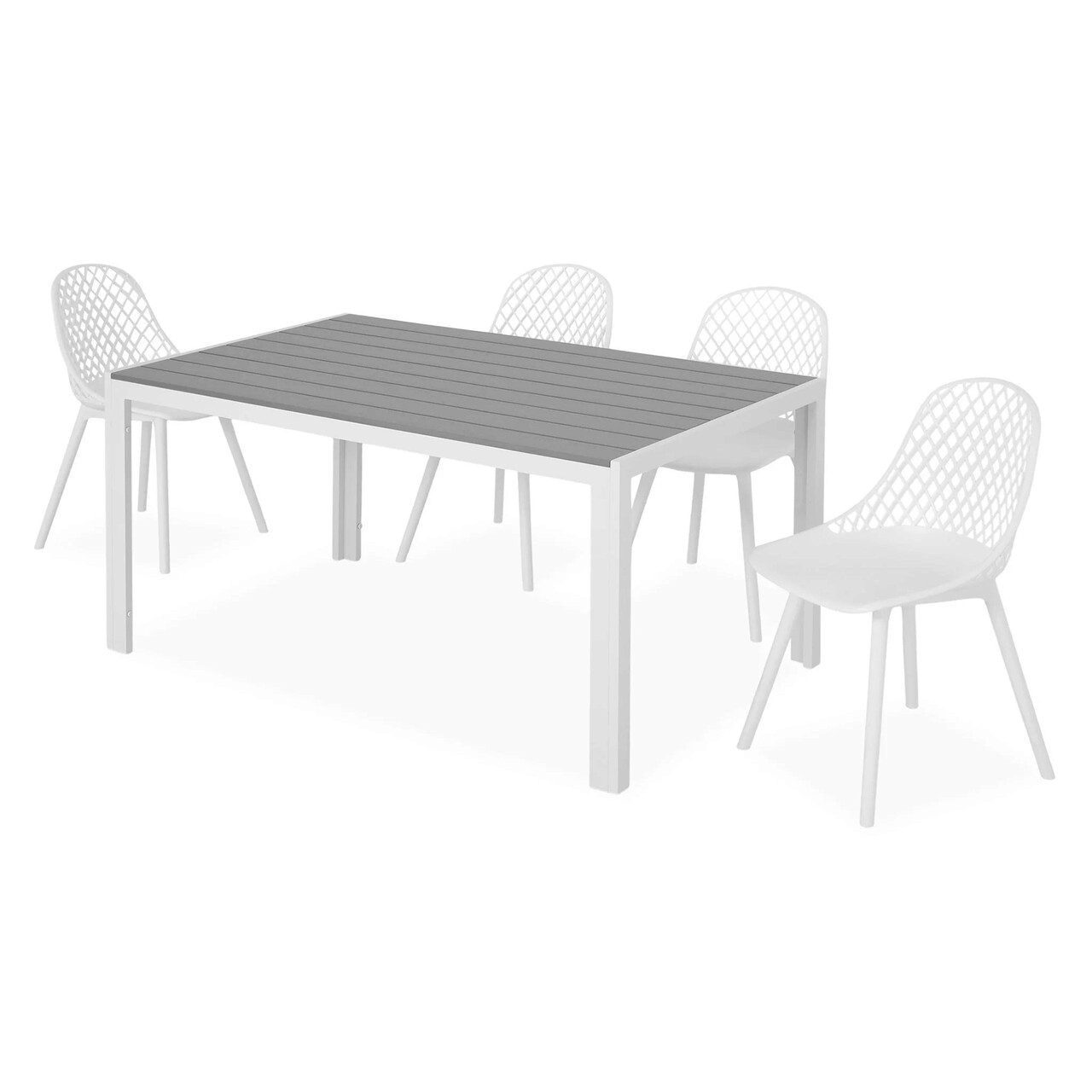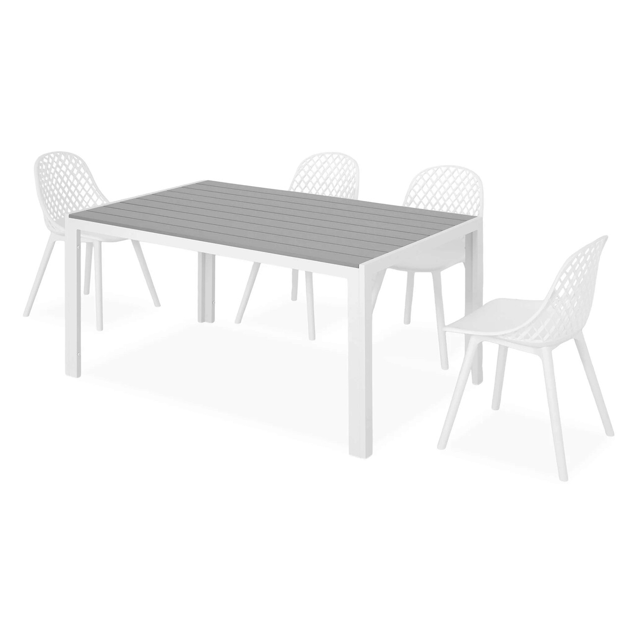 Set mobilier gradina/terasa Encore/Cosmos, 5 piese, 150x90x74 cm/46.5x54x84 cm, aluminiu/polipropilena, alb/gri