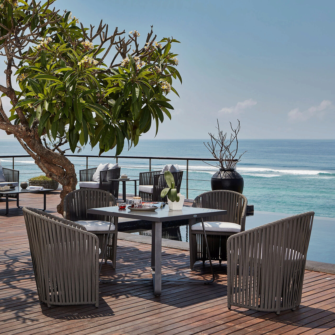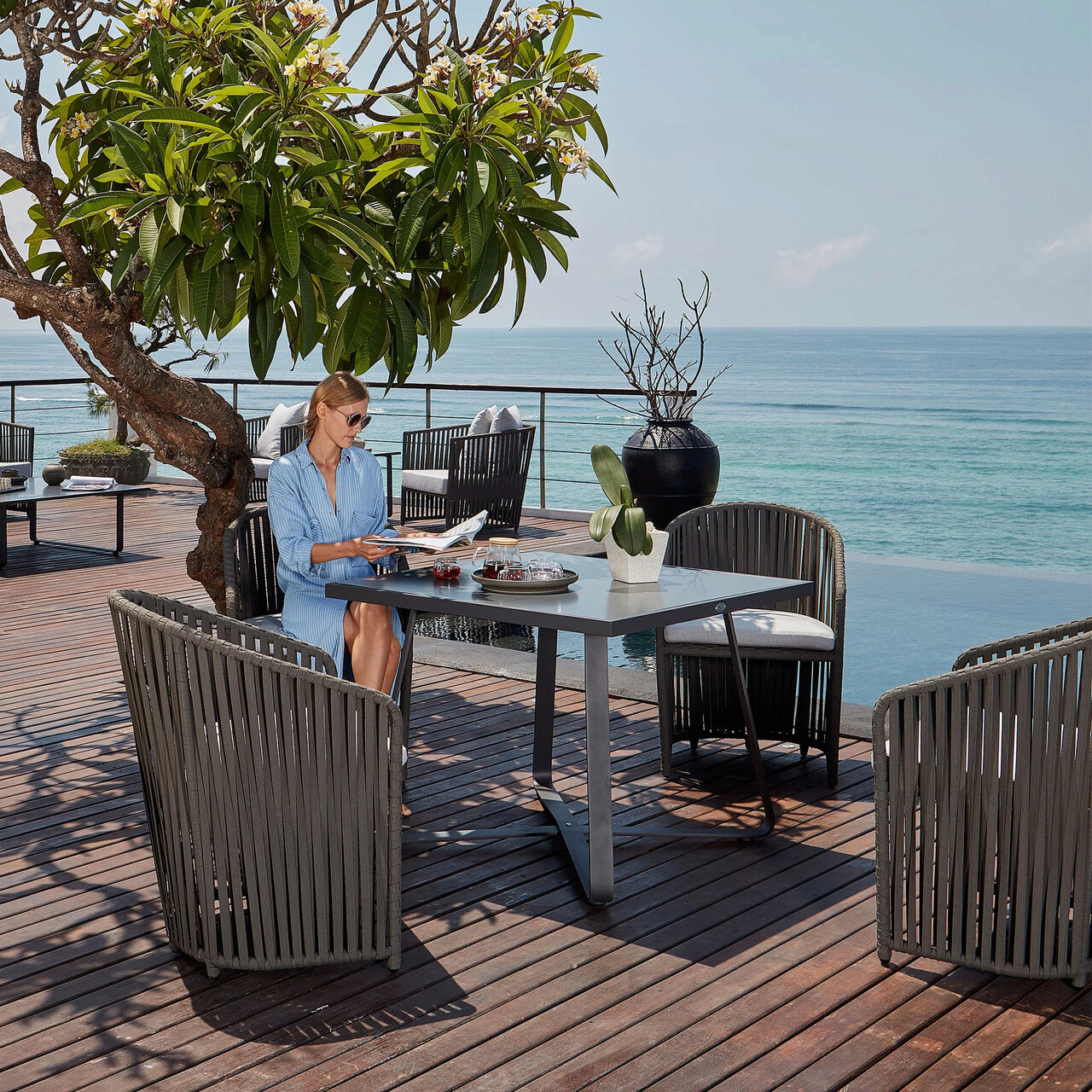 <p>Realizat din structura de aluminiu vopsita in camp electrostatic si impletita cu chinga Vyro din poliester tratat UV. Include perne din tesatura Olefin cu protectie impotriva umezelii si a decolorarii. Husele pernelor sunt prevazute cu fermoar pentru a fi mai usor de indepartat si curatat.<br />Setul contine: Masa: 200x100x75 cm<br />Scaun: 62x64x86 cm</p>