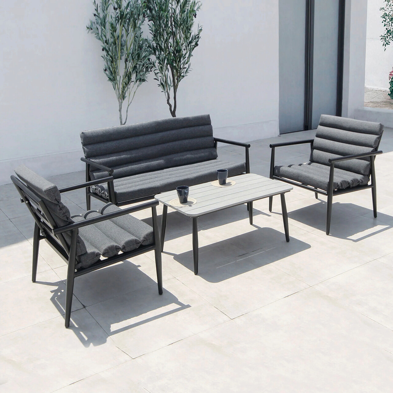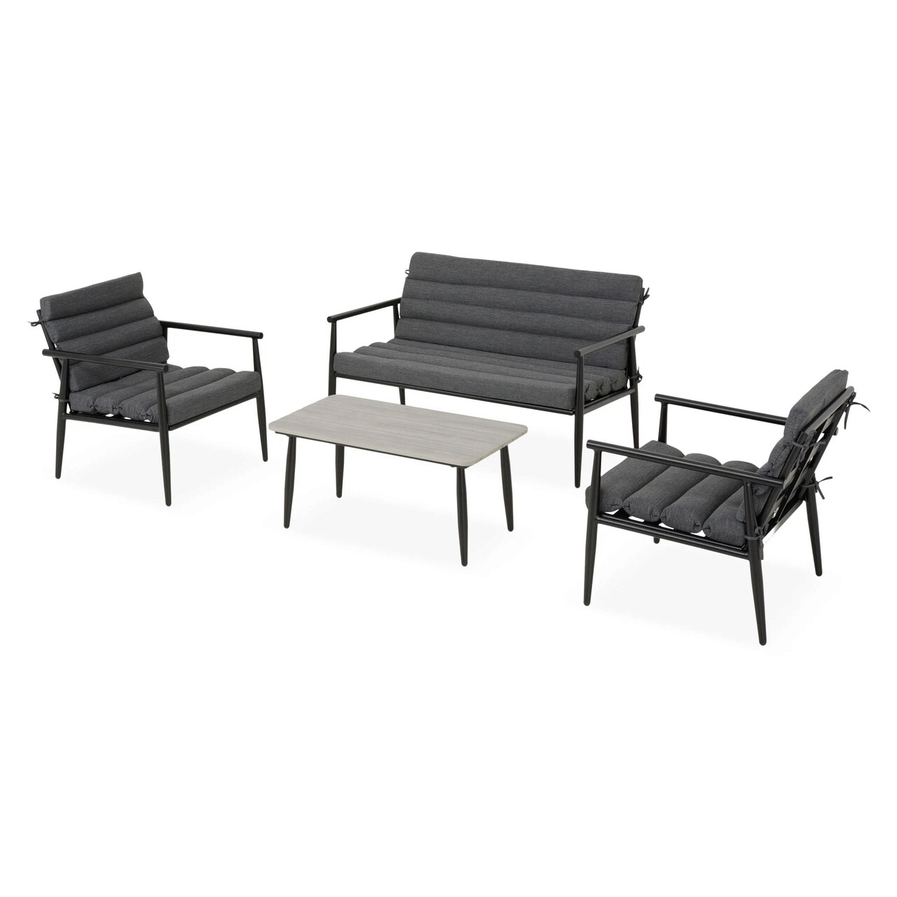 Set mobilier gradina/terasa Nantes, 4 piese, aluminiu, negru/gri