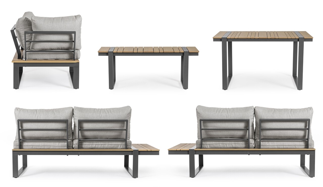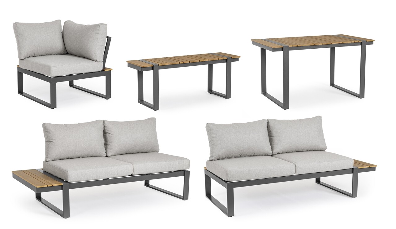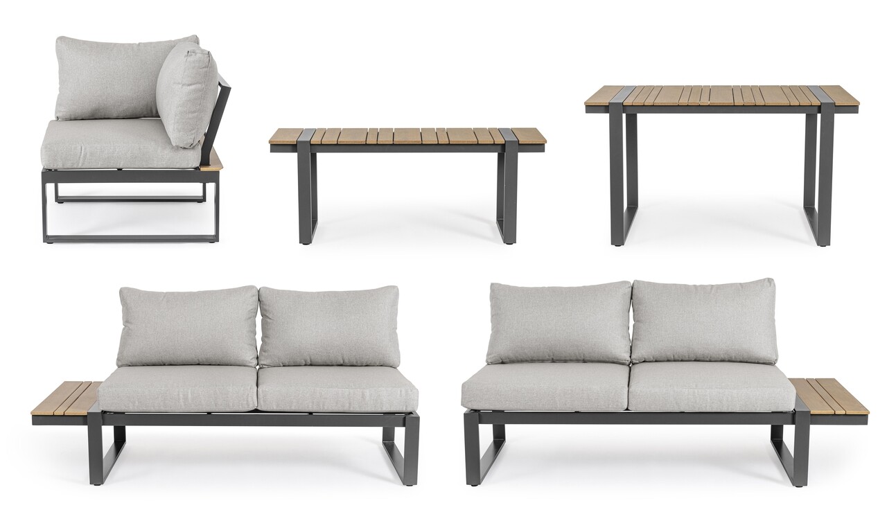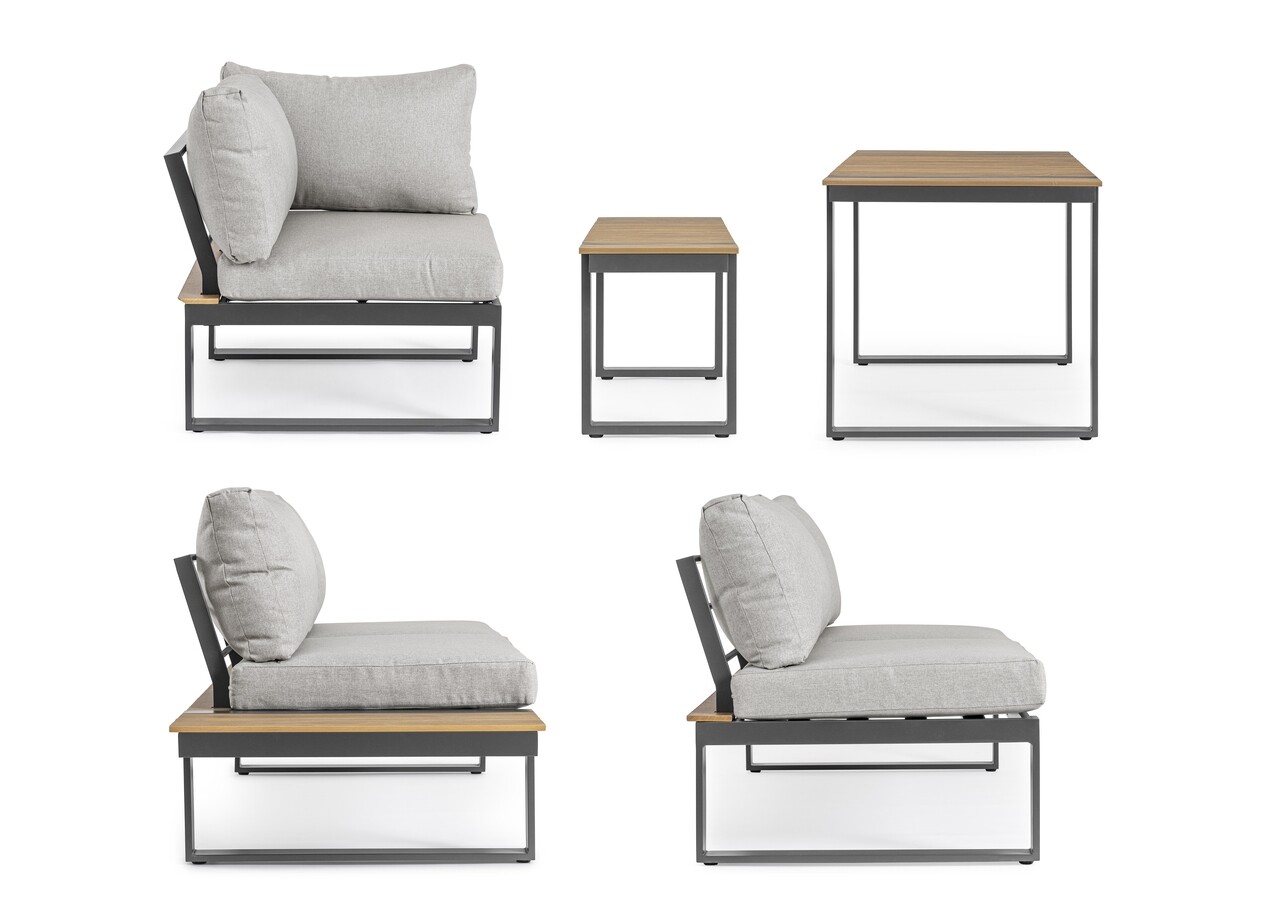 Set mobilier pentru gradina/terasa 5 piese Sven, Bizzotto, aluminiu/placaj/poliester, gri carbune