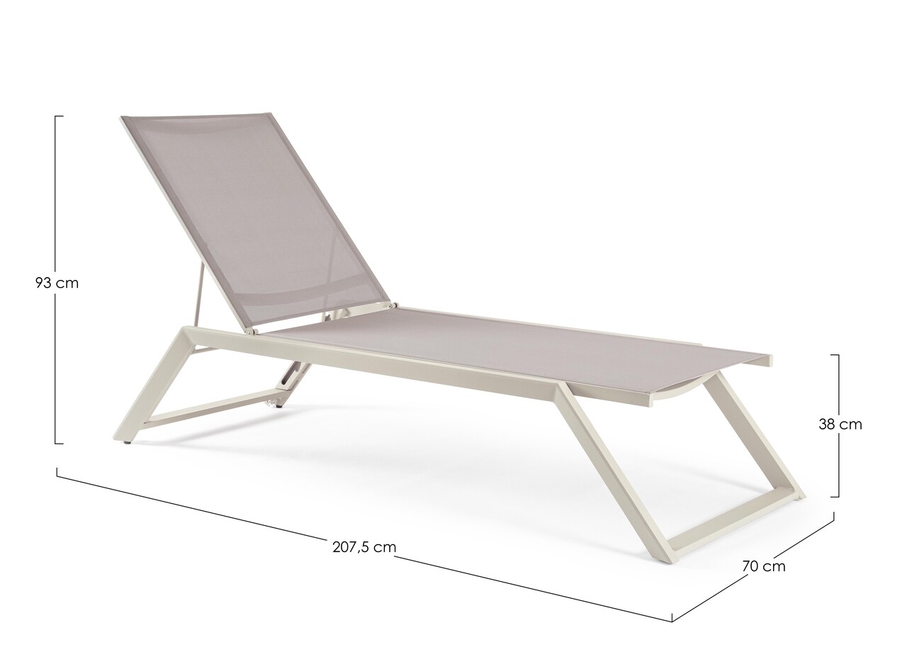Sezlong cu roti Kaylan, Bizzotto, 70 x 207.5 x 93 cm, aluminiu/textilena 1×1, grej rastin
