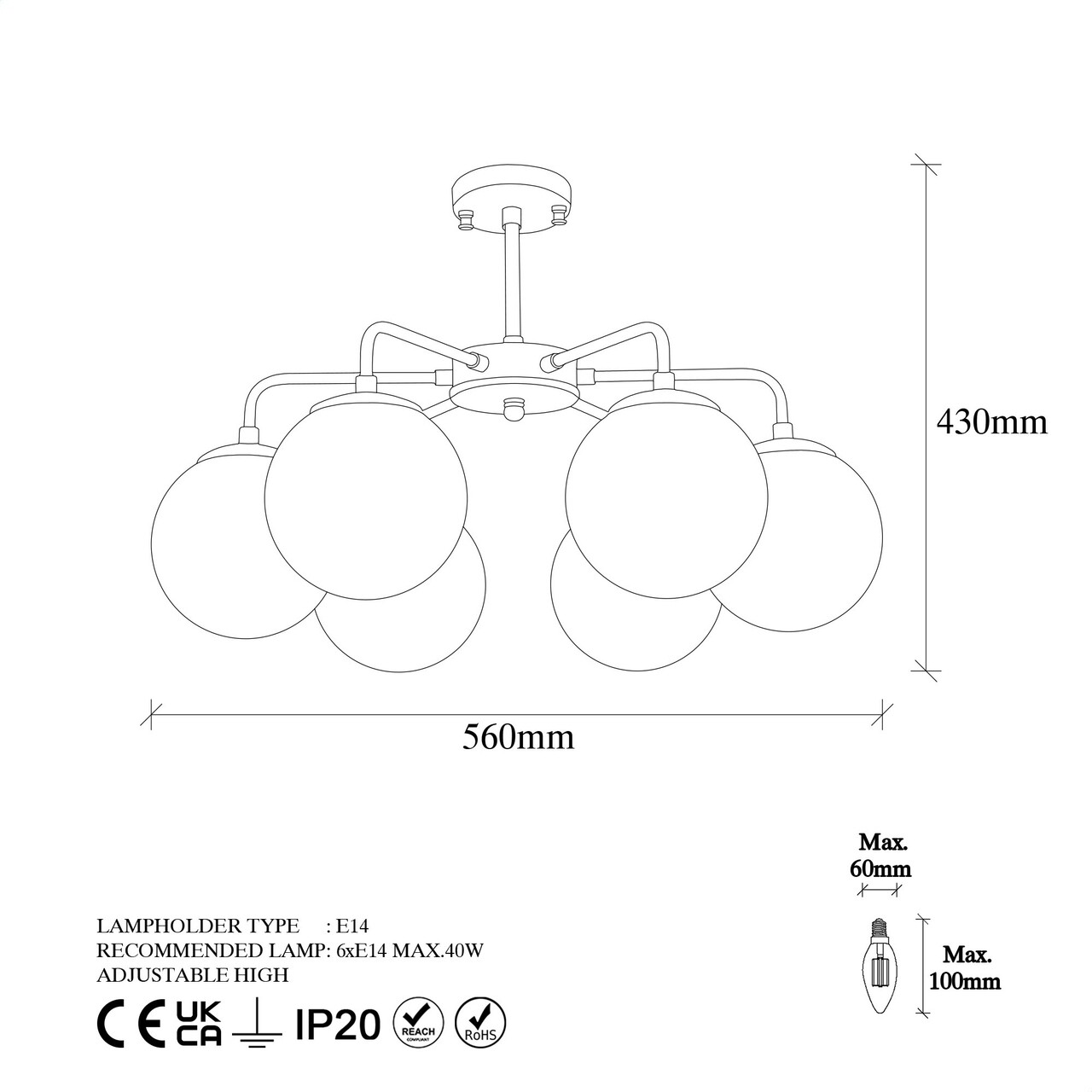 <p>Abajur din sticla<br/><br/>Marime: 56 x 56 x 43 cm<br/><br/>Diametrul abajurului: 15 cm<br/><br/>Inaltime reglabila<br/><br/>Max. Dimensiunea becului: Diametru: 6 Înălțime: 9 cm<br/><br/>Becul nu este inclus<br/><br/>220 – 240 V<br/><br/>IP20<br/><br/>Tip soclu: 3 x E14 Max 40 W<br/></p>