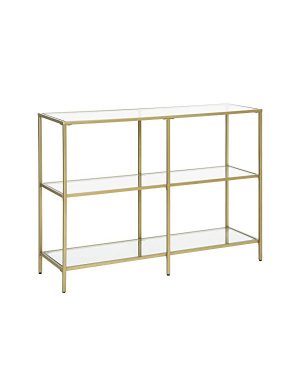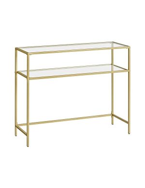 Consola din sticla securizata, Vasagle, 2 rafturi, 35 x 100 x 80 cm, LGT025A01, Auriu