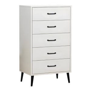 Comoda Adore Diamond, 1 usa, 5 sertare, cu rotile, Alb Lucios, 85 x 44 x 81 cm