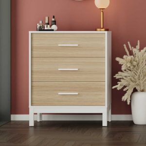 Comoda Adore London, 3 sertare, Alb – Stejar, 73 x 88 x 45 cm