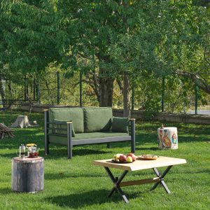 Canapea de gradina cu 2 locuri, Heaven, Kappis, 155x86x80 cm, Negru/Verde