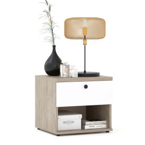 Noptiera PRIMAVERA 1 sertar, Stejar, Alb Gloss