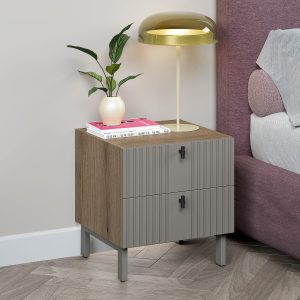 Noptiera ARONA 60, 2 sertare, Nuc Warmia, Gri Piatra