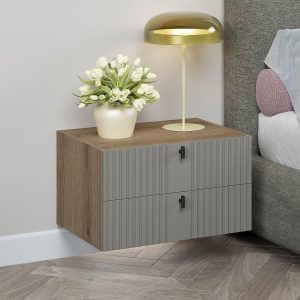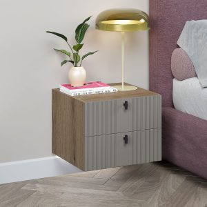 Noptiera suspendata MATERA 60, 2 sertare, Stejar, MDF Gri Piatra Vopsit mat