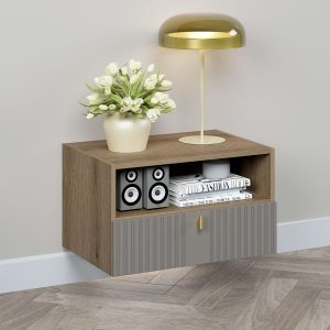 Noptiera suspendata MATERA 45, 1 sertar, Stejar, MDF Gri Piatra vopsit mat