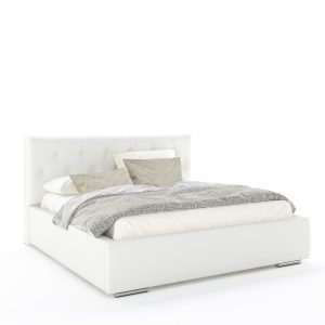 Pat tapitat ARISA, 140×200, suport saltea, piele eco Alba