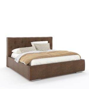 Pat tapitat ROUND, cu somiera rabatabila, spatiu depozitare, maro, 140×200 cm