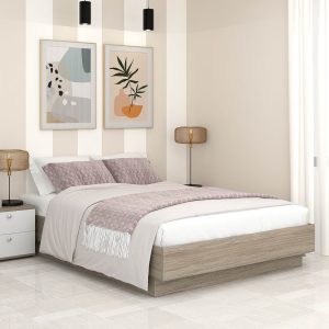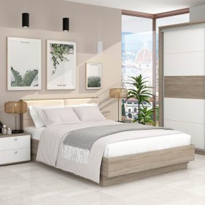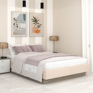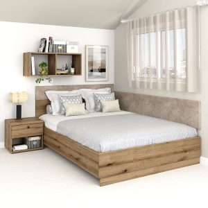 Cadru pat matrimonial LINEA, Oak, Catifea Bej
