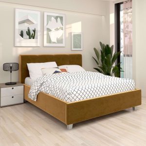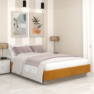 Pat tapitat ARISA, 140×200, suport saltea, catifea Galben Mustar