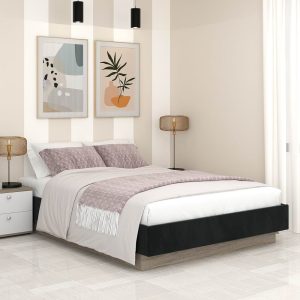 Cadru pat matrimonial LINEA, Oak, Catifea Neagra